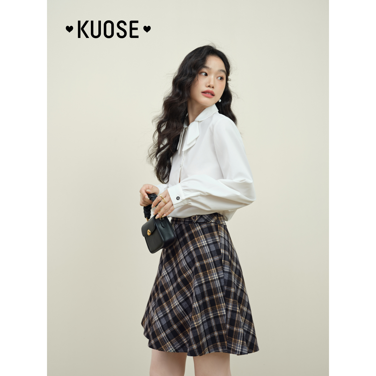 a字显瘦短裙半裙春 新款 阔色学院风毛呢格子半身裙裤 女2025秋季