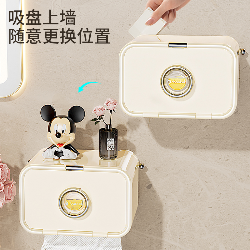 吸盘纸巾盒高级感卫生间免打孔壁挂式 抽纸盒厕所防水卷纸器置物架
