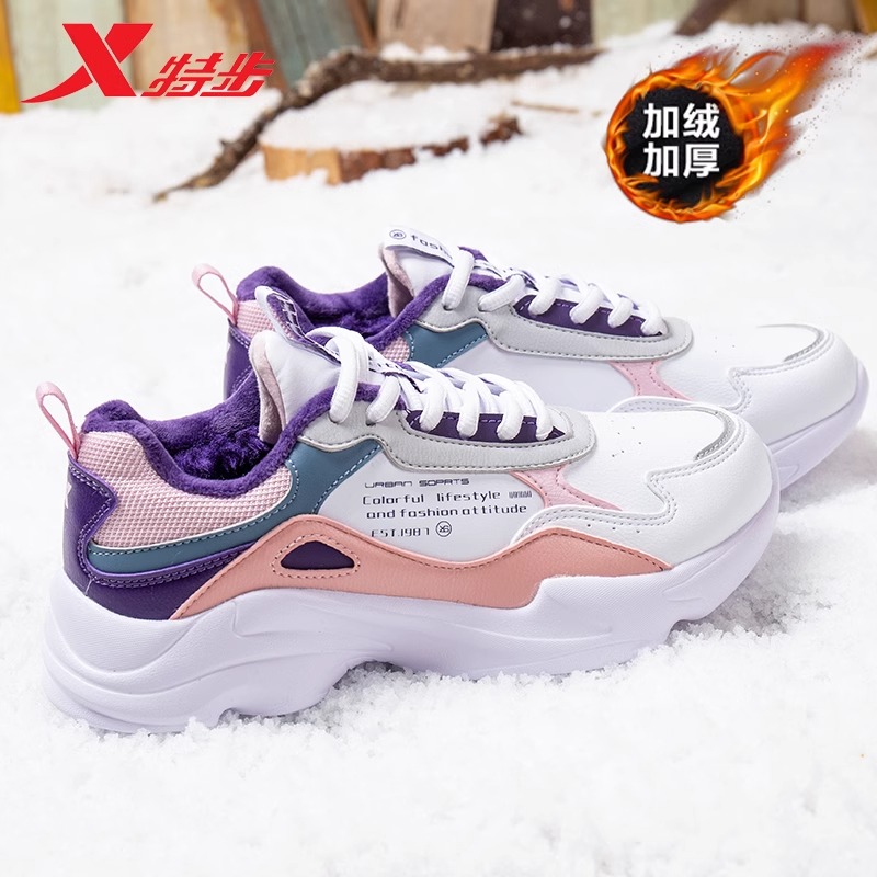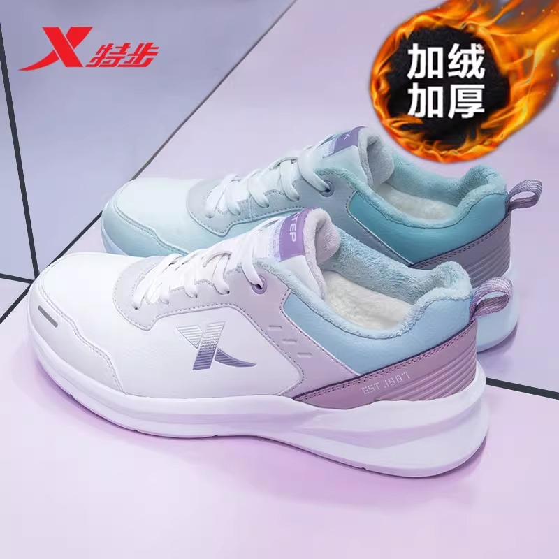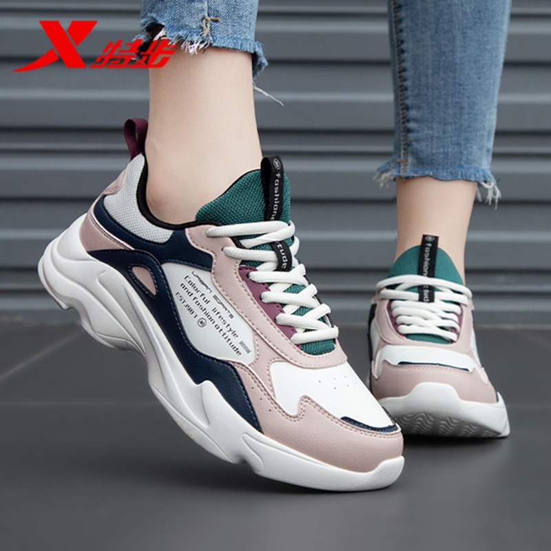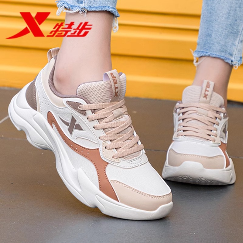 跑步鞋 皮面防泼水软底休闲跑鞋 女鞋 减震运动鞋 秋新款 特步波浪鞋