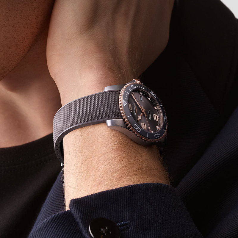 浪琴Longines康卡斯手表 橡胶带自动机械潜水男表L3.781.3.78.9