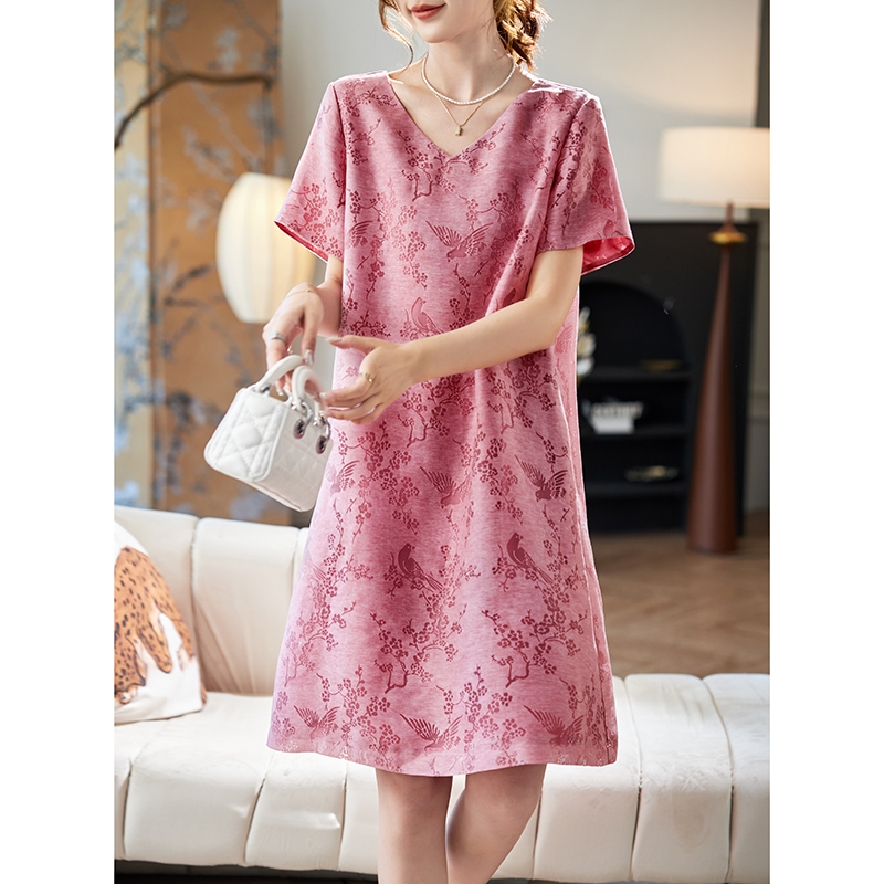 中长款 宽松大码 过膝休闲懒人裙 T恤女2024夏季 纯棉连衣裙孕妇短袖