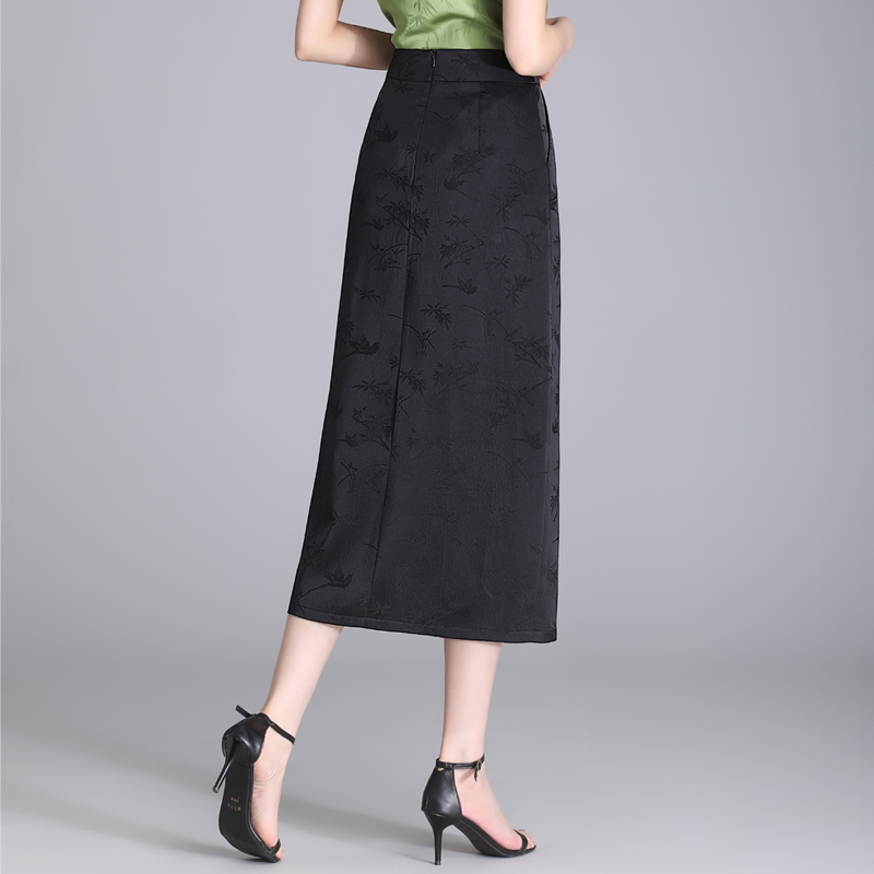 提花中长款 半身裙女款 新中式 2025新款 开叉包臀裙气质一步裙女 爆款