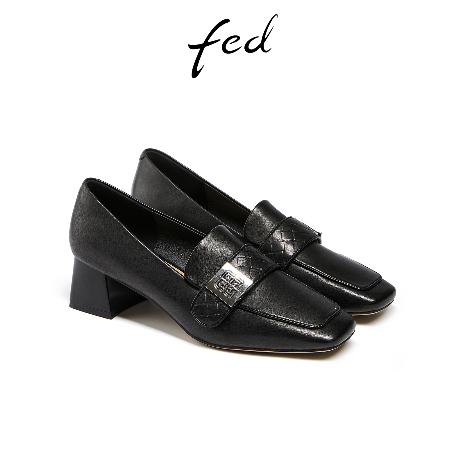 新款 女鞋 一脚蹬深口单鞋 fed真皮鞋 女D0320 春季 黑色乐福鞋 ZC236 鞋