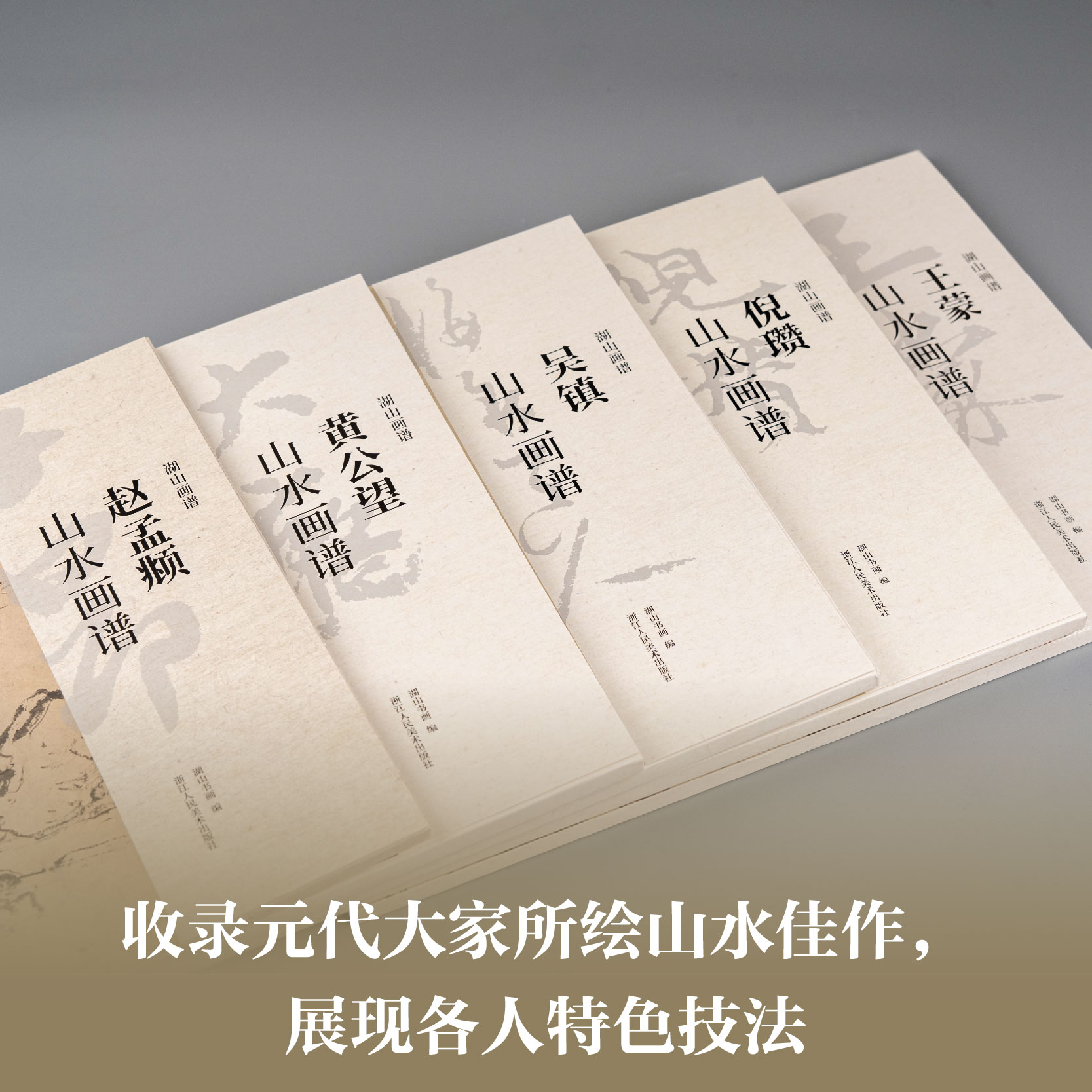 四家王蒙吴镇黄公望倪瓒赵孟頫传统中国画山水图册页水墨画绘画入门素材鉴赏临摹卡画册画稿作品集 元 湖山画谱元 代山水画谱全集5册