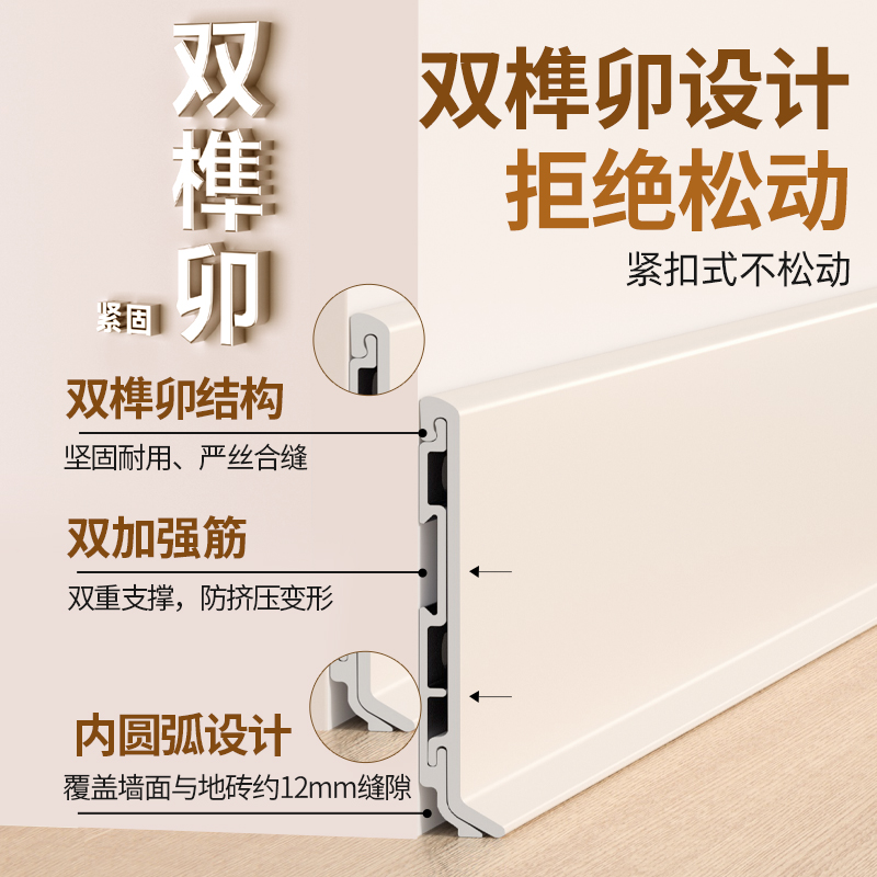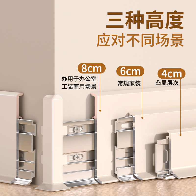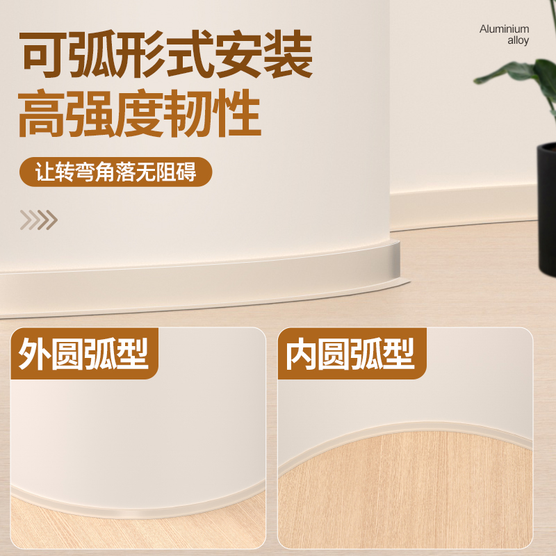 铝合金踢脚线奶油风6CM金属不锈钢新型卡扣地脚线超薄贴脚线套餐