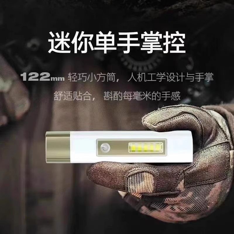 超亮LED强光手电筒USB可充电可携式 珍小家用远射照 超亮袖