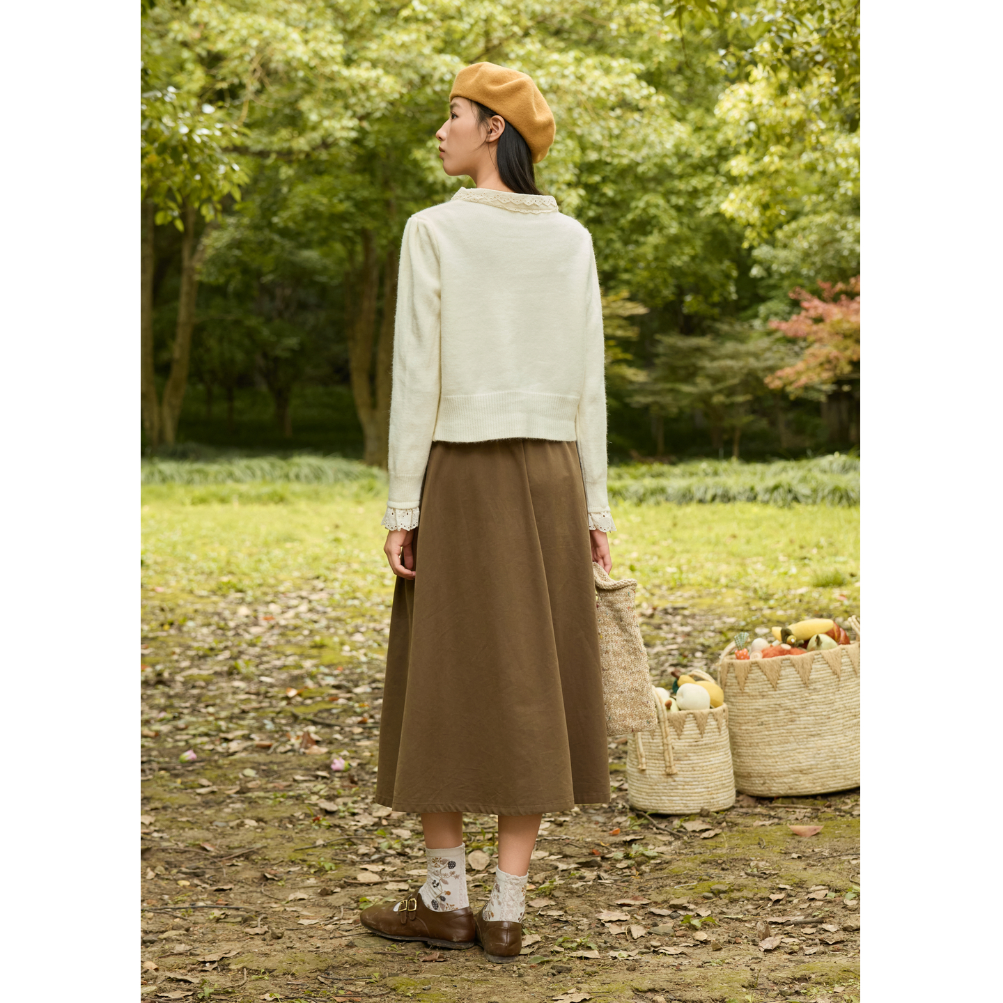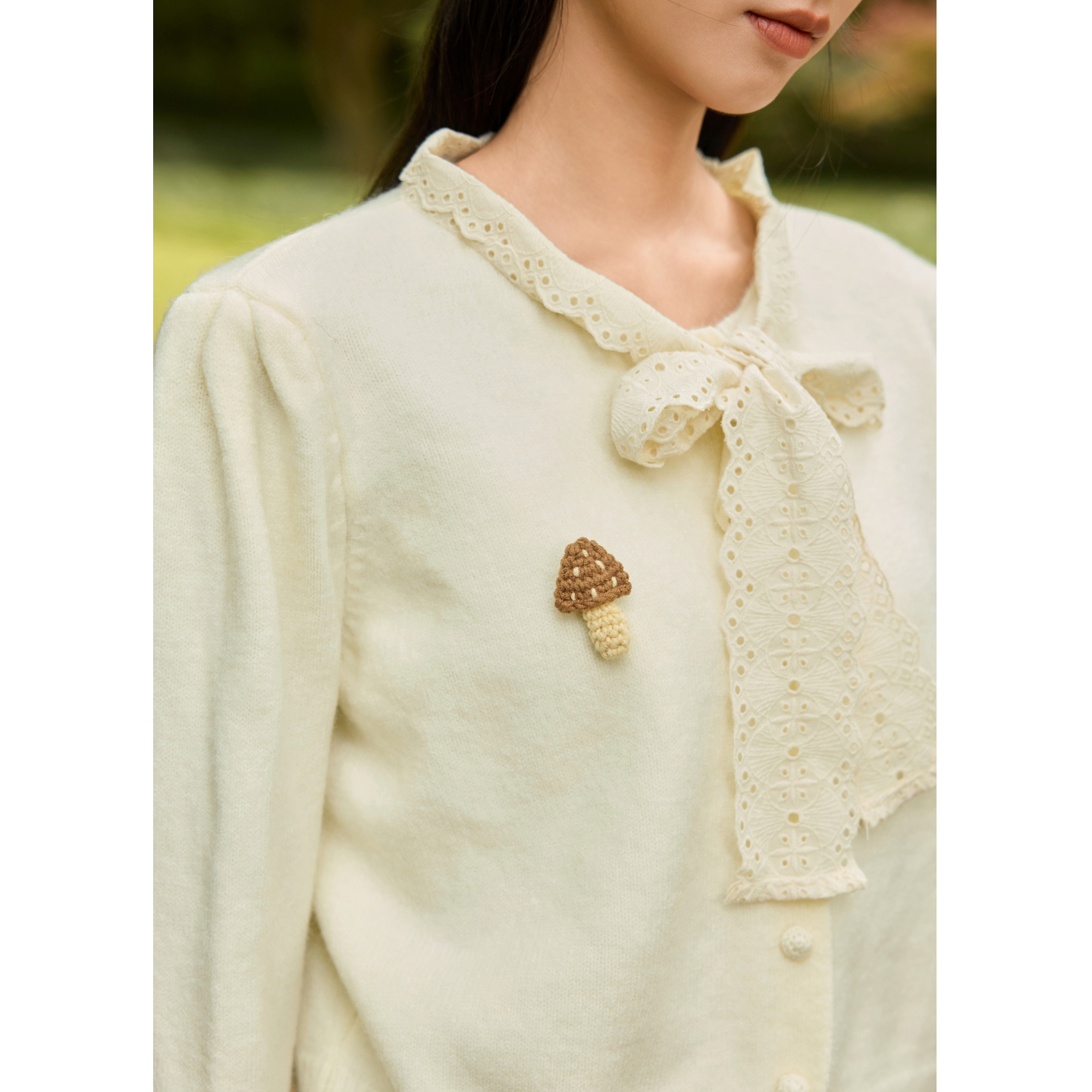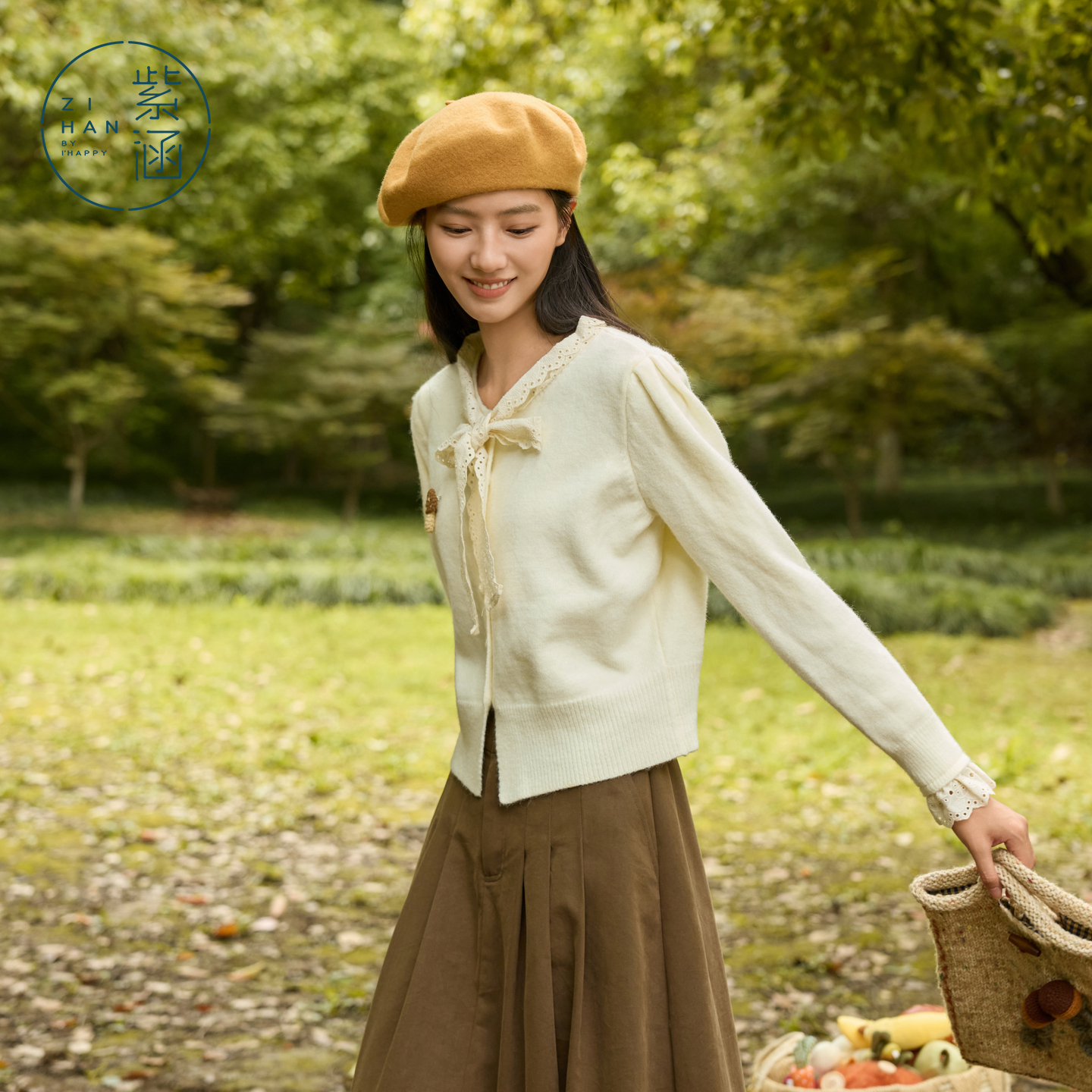 简约镂空花边拼接毛衣外套 新款 紫涵v领系带针织开衫 女2025年秋季