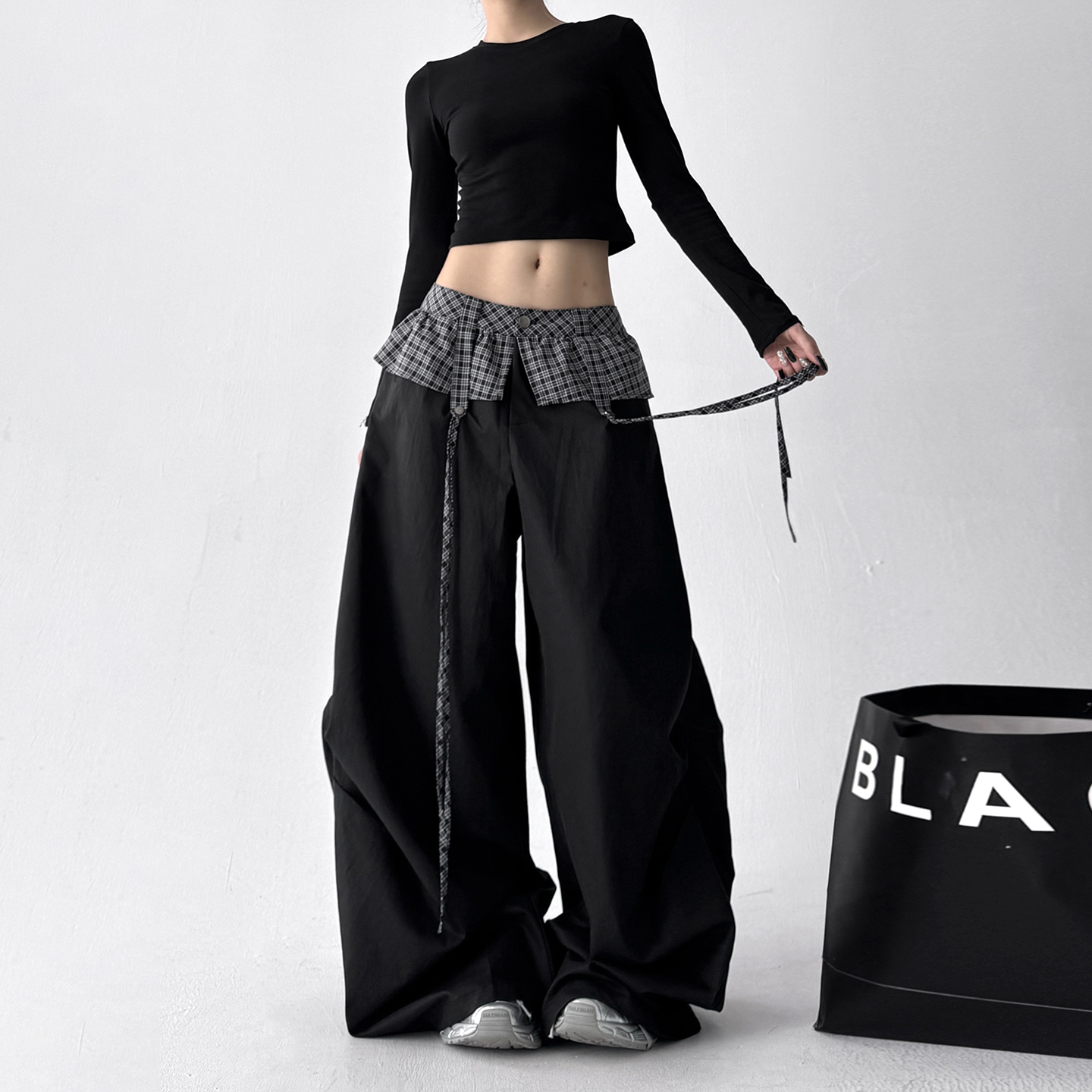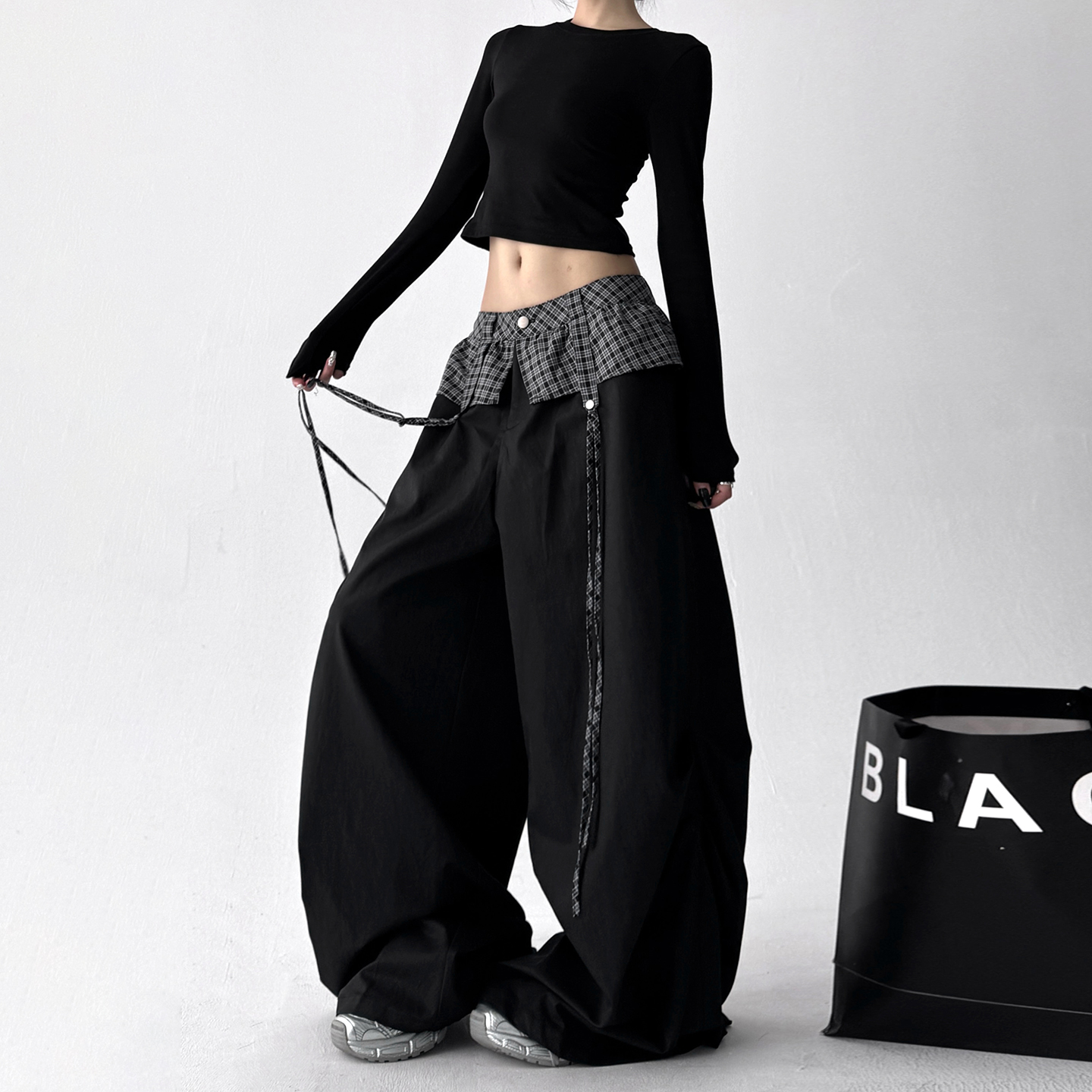 女2025超火秋装 高个子潮学生休闲裤 新款 裤 bf慵懒风工装 黑色阔腿裤