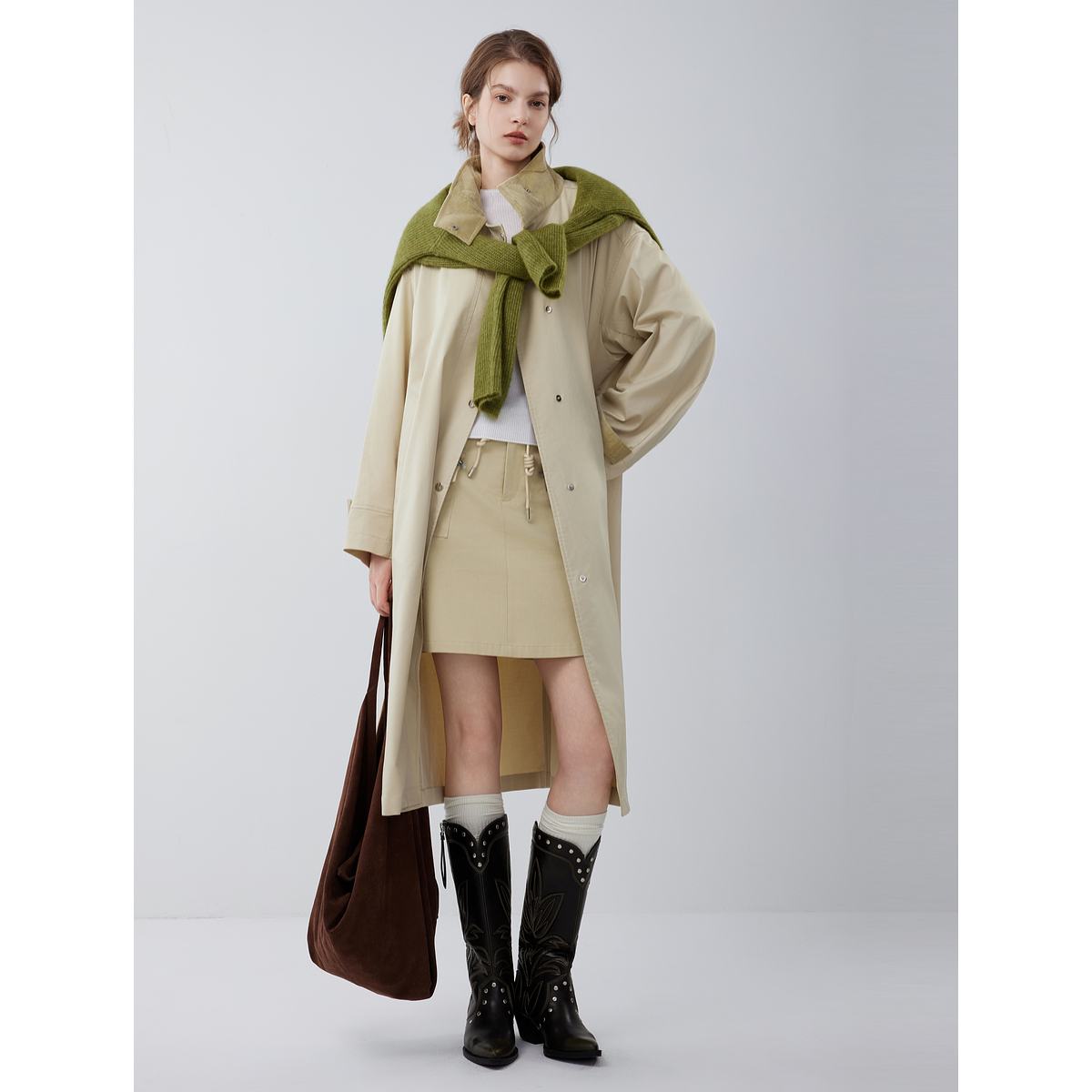 RUISHI芮时 百搭风衣外套女春秋 立领挺括定制一粒扣廓形短长款