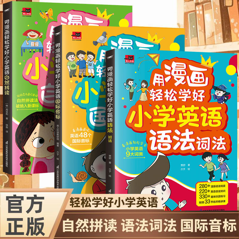 用漫画轻松学好小学英语语法词法国标音标自然拼读 小学英语语法提前学漫画英语语法零基础语法单词语法一套搞定