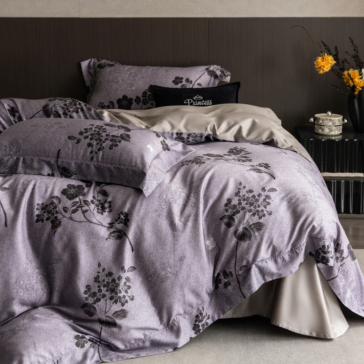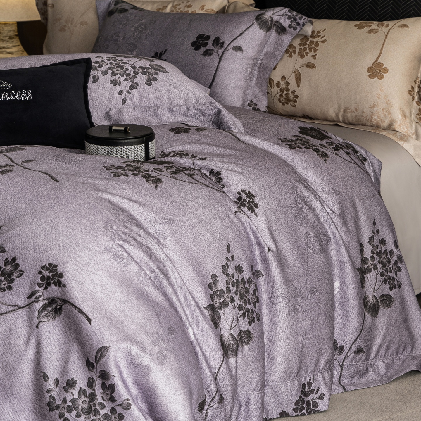 红花车复古风天丝棉数码 印花四件套轻奢被套床单1.8m床床上用品