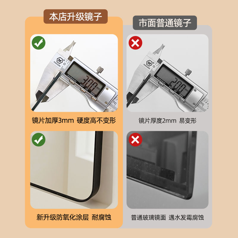 法式 梳化妆镜 高级感卫生间镜子浴室贴墙自粘墙面壁挂免打孔挂墙式