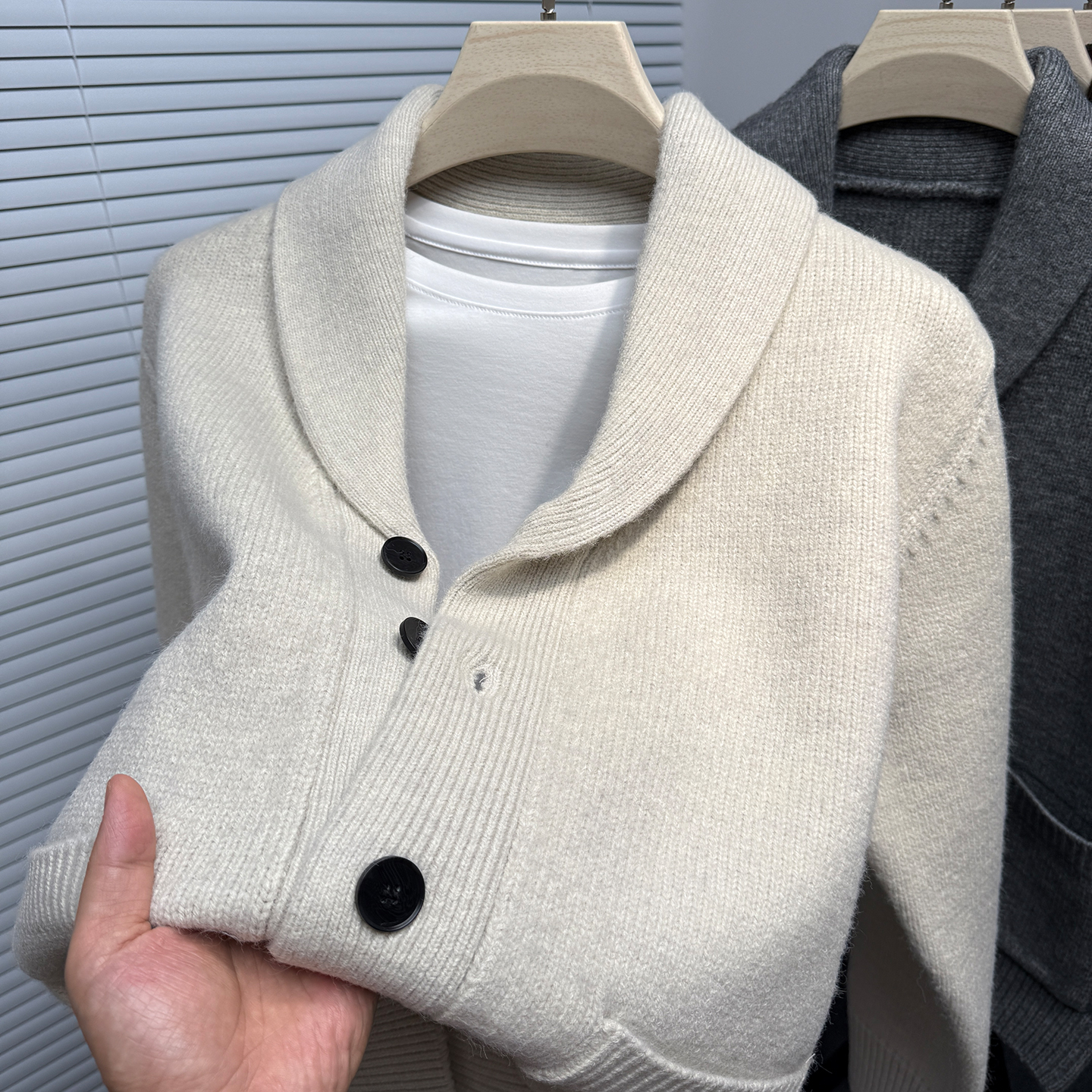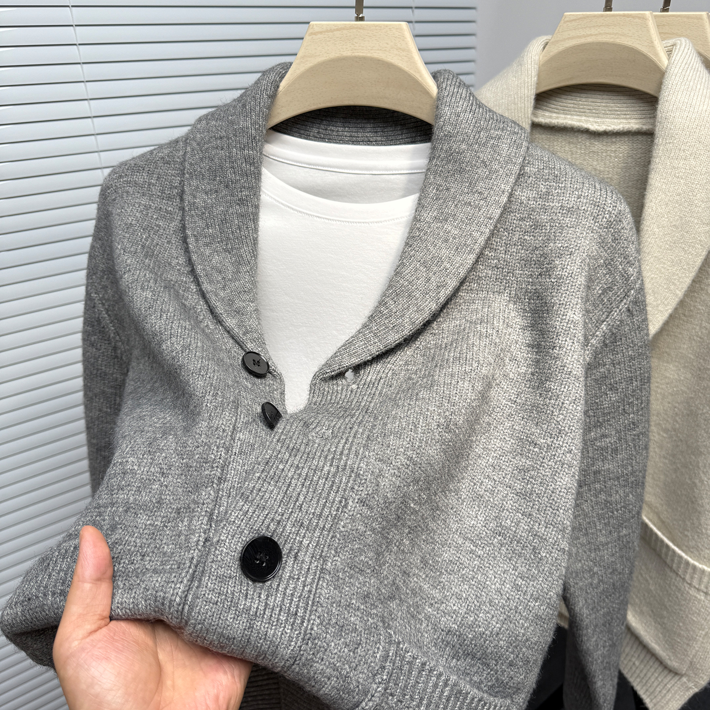 CLIMAX VISION可机洗32支全棉纱线慵懒老钱风亨利领毛衣针织衫