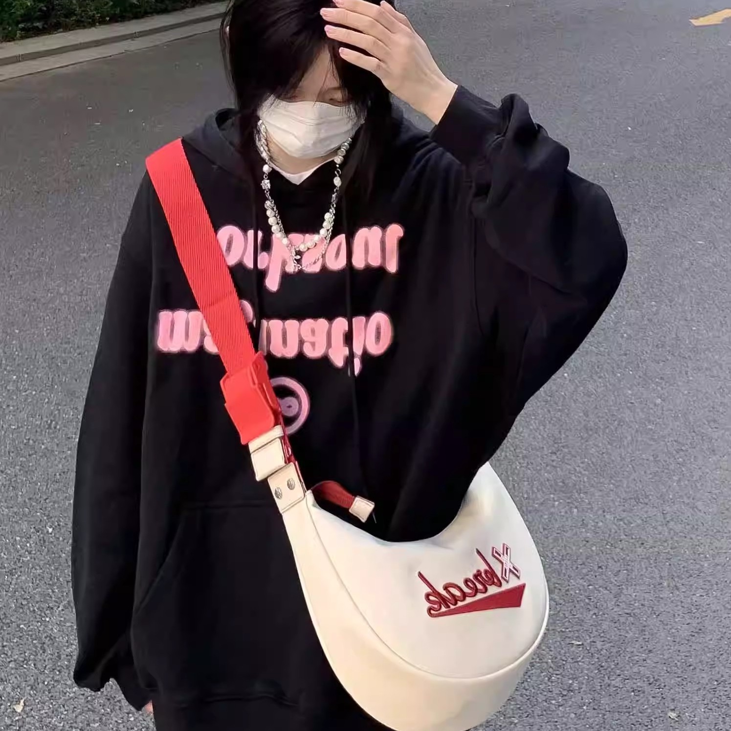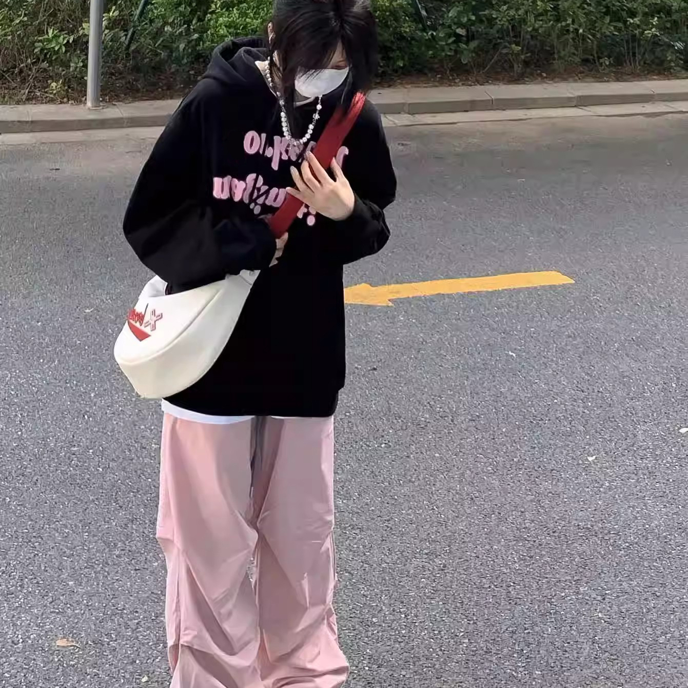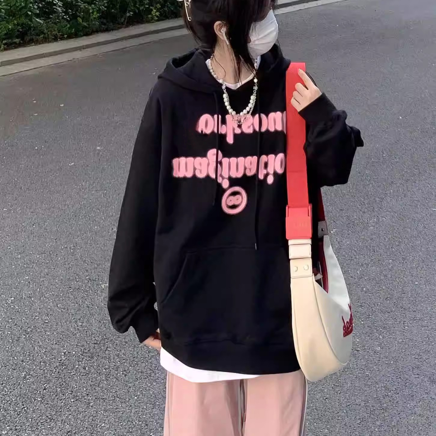 外套 早秋休闲中长款 幻影字母印花标语连帽卫衣女美式 街头情侣帽衫