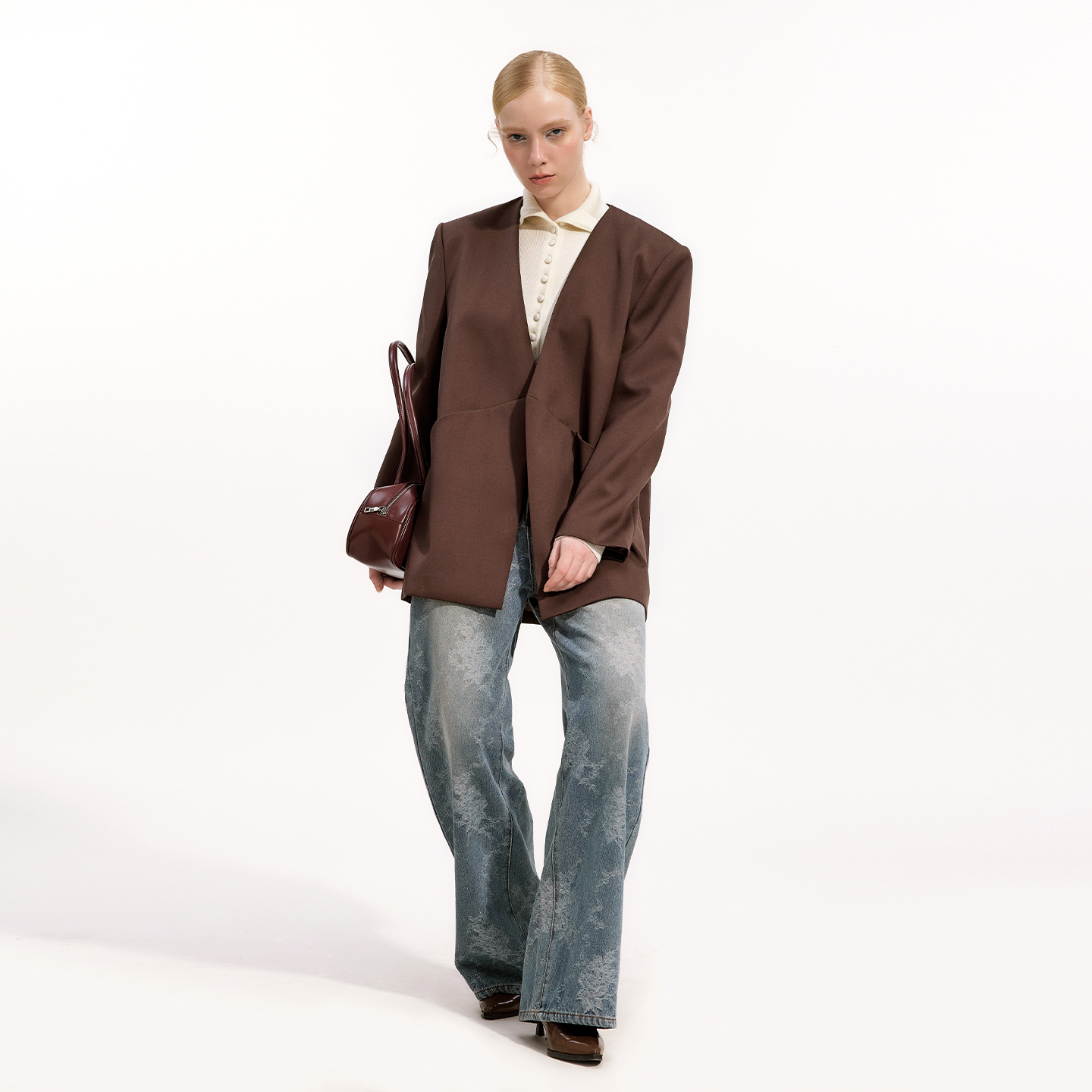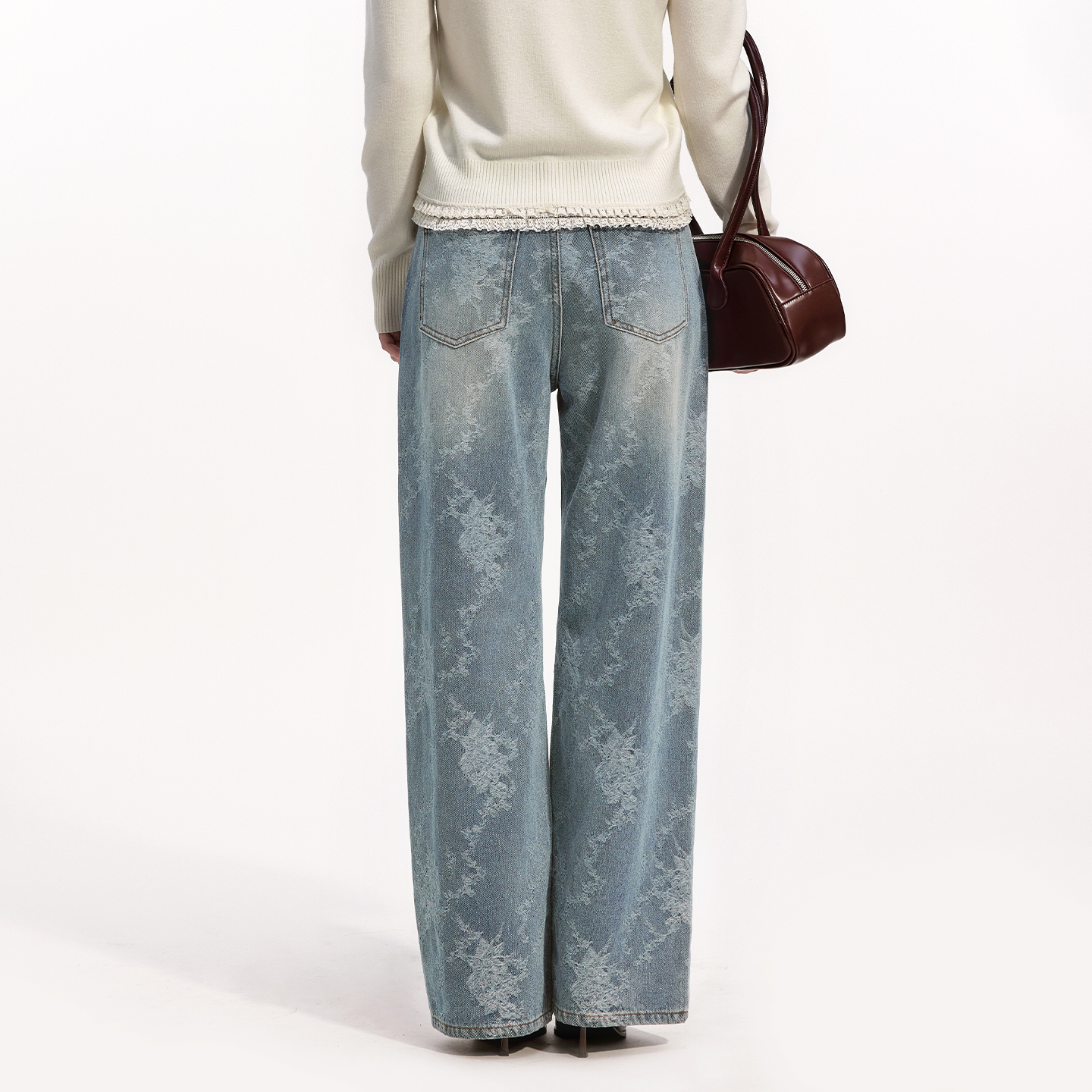 2025秋新款 磨毛花纹长裤 摩登时尚 艺之卉复古感做旧直筒牛仔裤