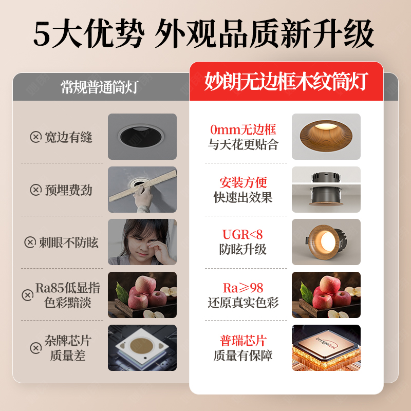 智能中古弧面筒灯嵌入式 隐形无边框已接入米家APP胡桃木纹色孔灯