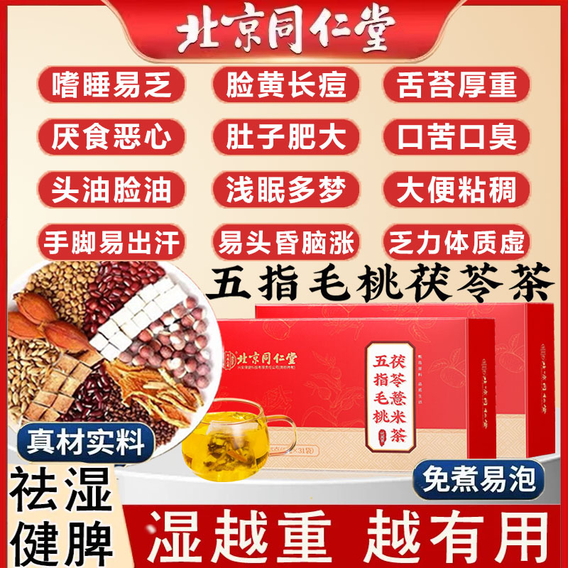 北京同仁堂五指毛桃茯苓薏米茶祛湿熬夜养脾养胃茶养生茶明目清火