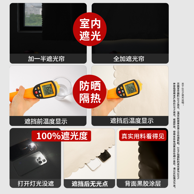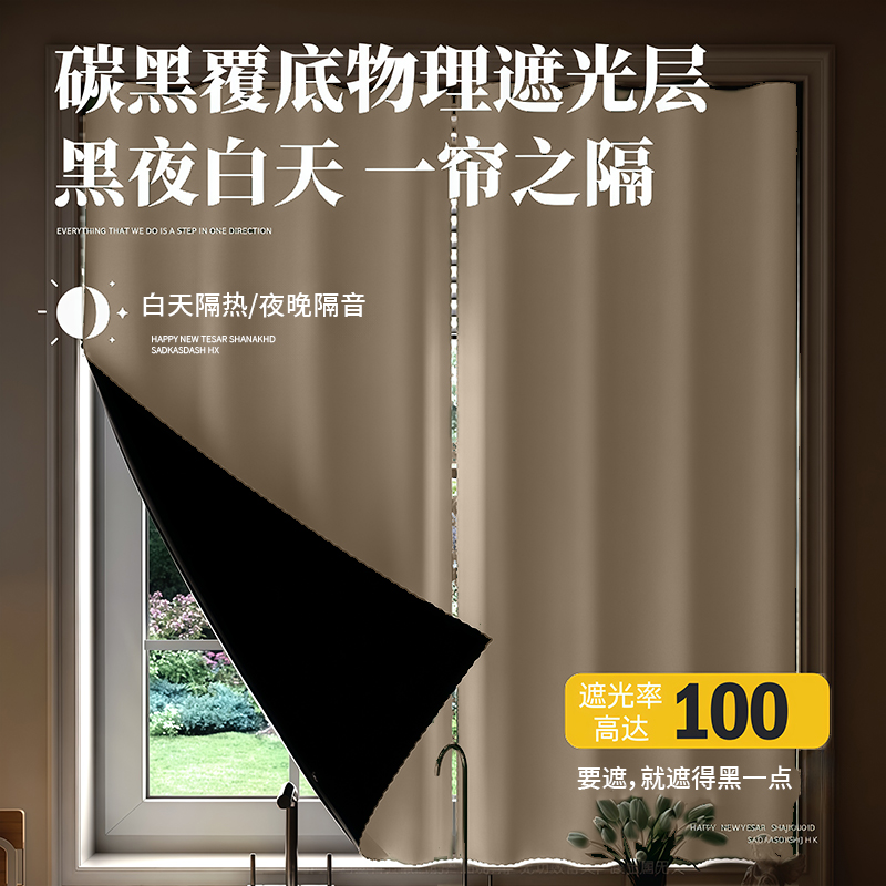新款 魔术贴全遮光窗帘免打孔出租屋卧室遮光布阳台防晒隔热遮阳帘