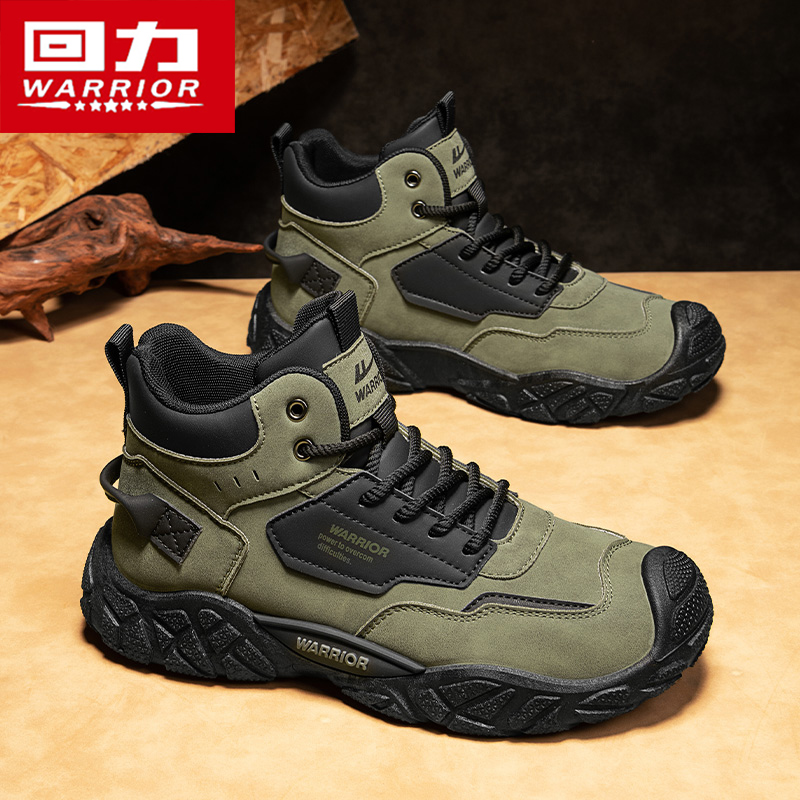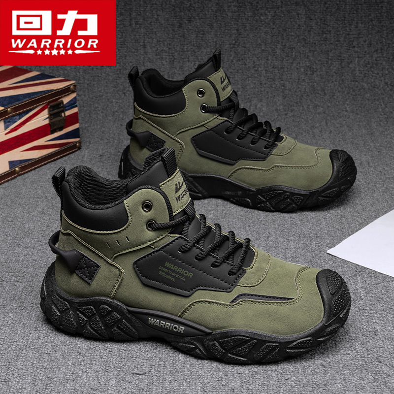 军绿工地干活防滑耐磨户外运动登山潮鞋 秋季 2025新款 回力高帮男鞋
