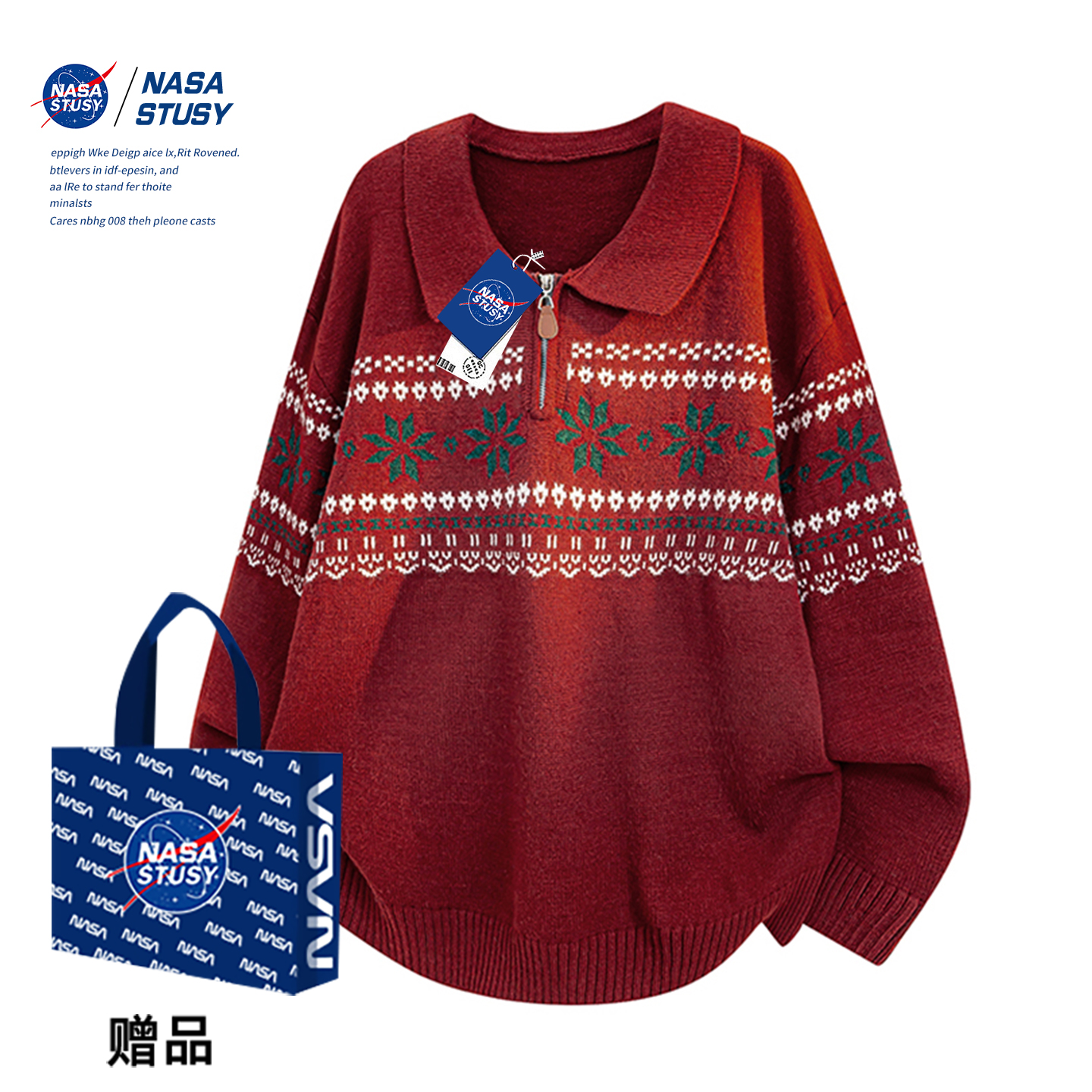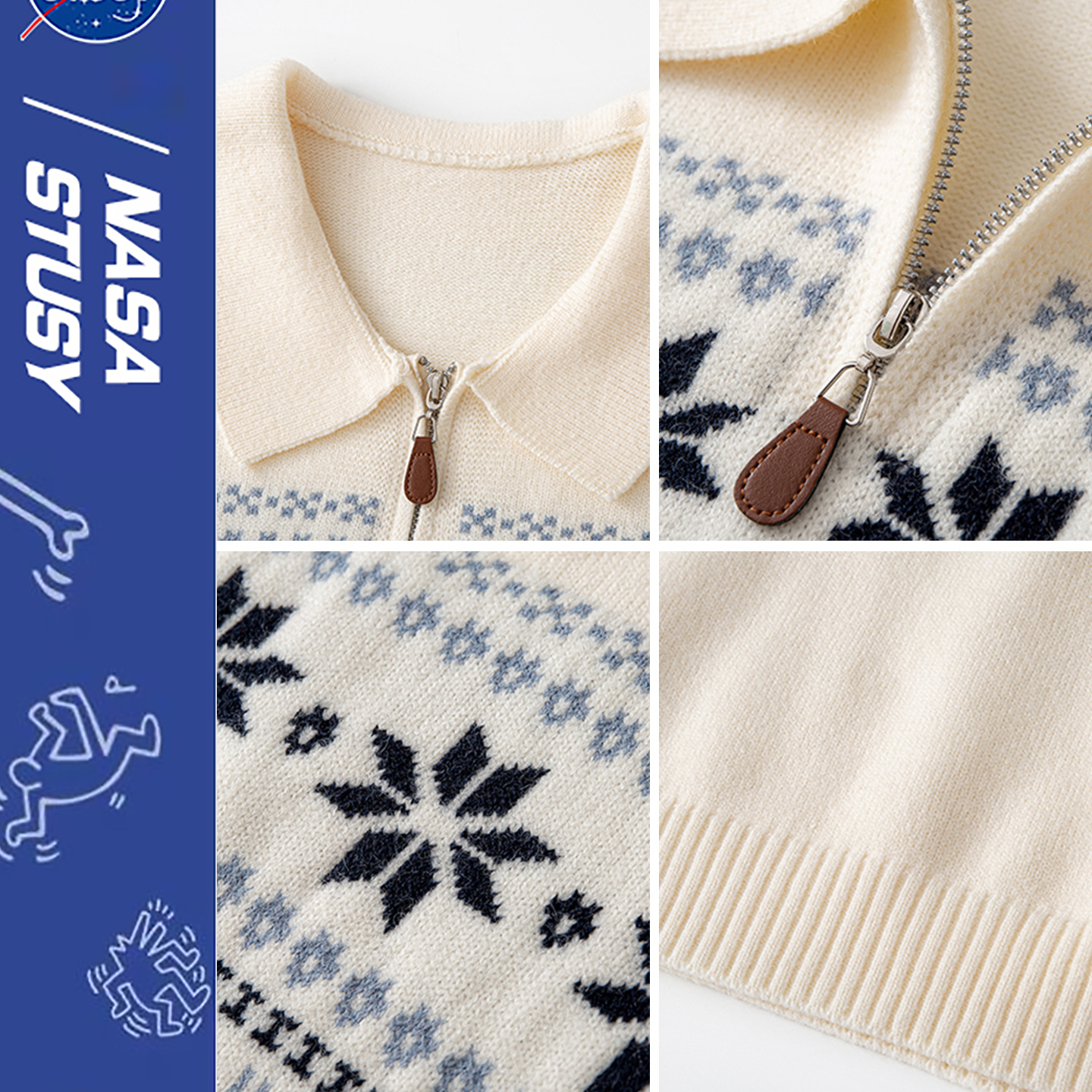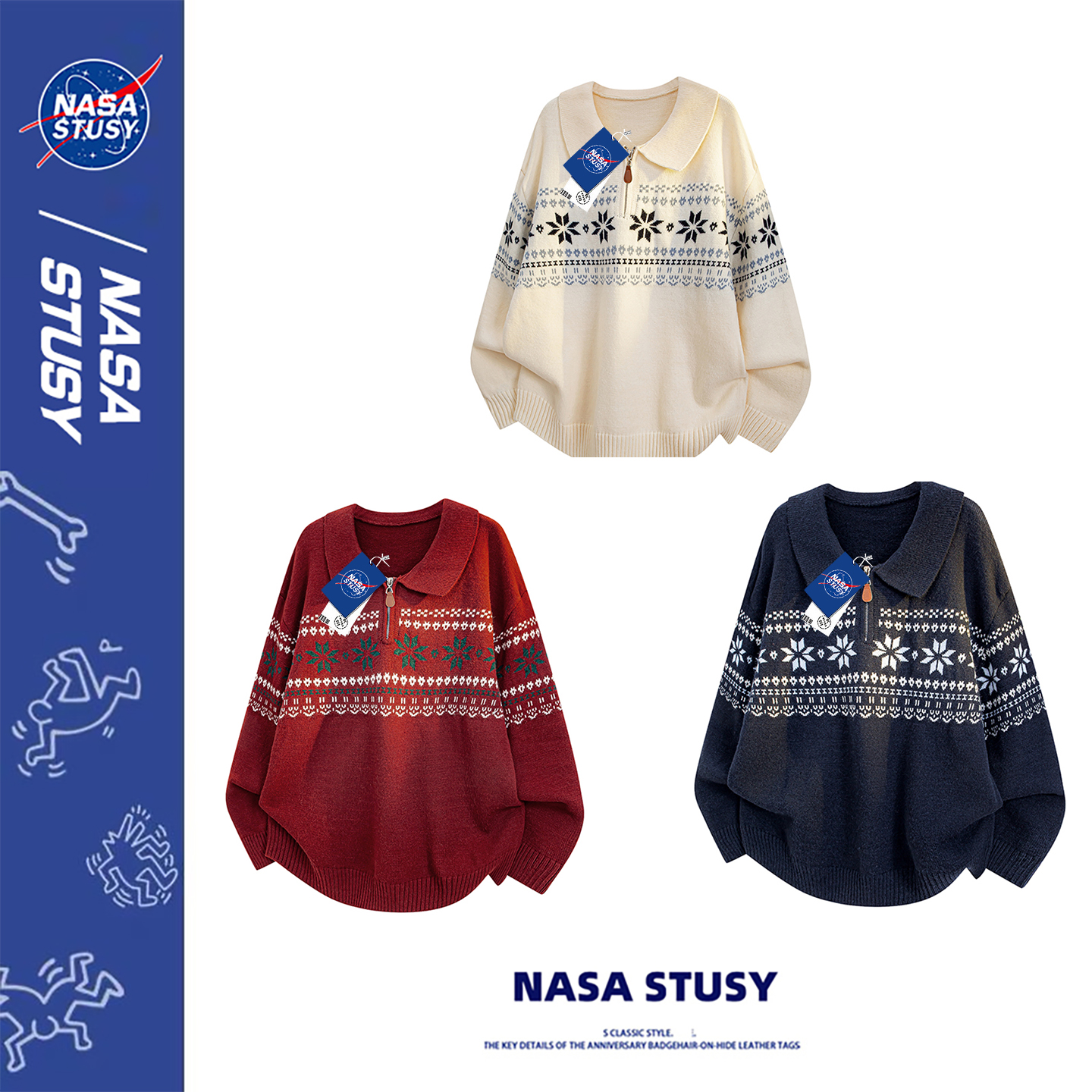 STUSY美式 针织衫 高街2025新款 男款 情侣POLO半拉链毛衣 秋冬装 NASA