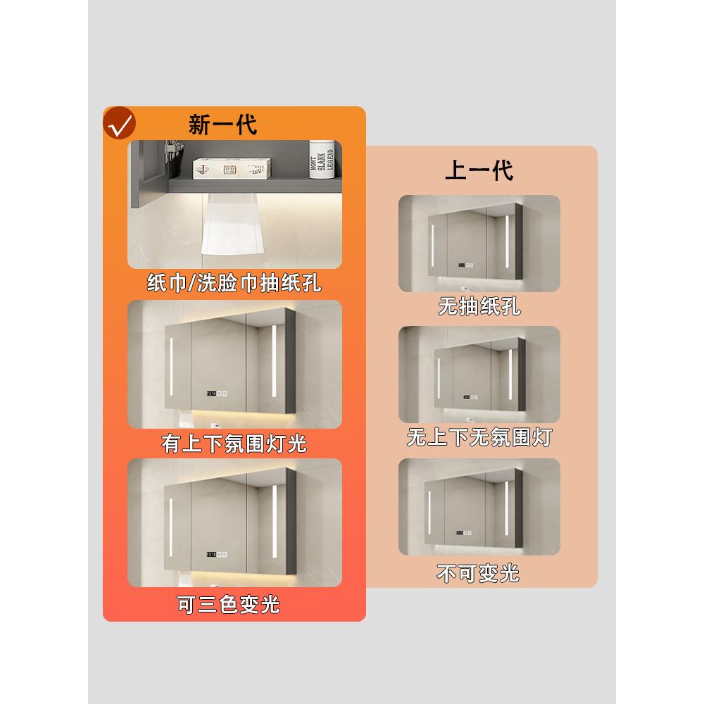 智能浴室镜柜单独卫生间挂墙式 带灯防雾收纳一体柜洗手间储物镜柜