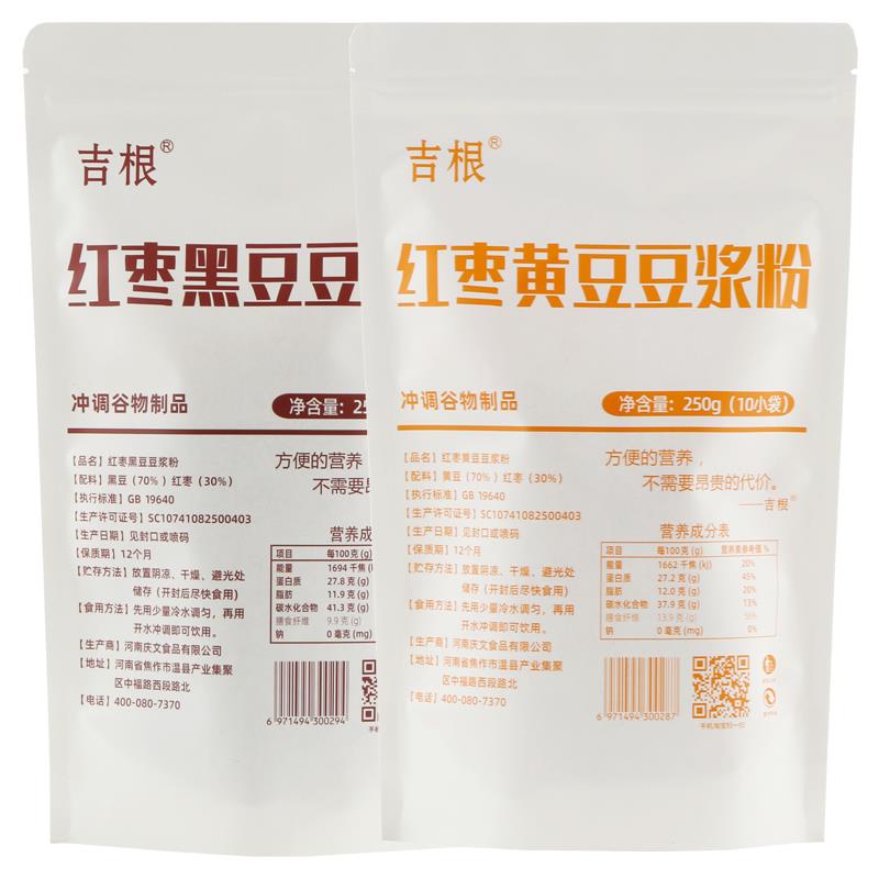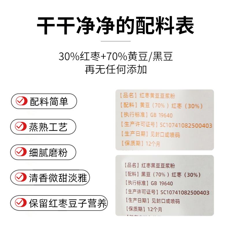 吉根红枣豆浆粉黄豆黑豆糖全豆纯豆浆粉早餐袋装 冲饮小包装