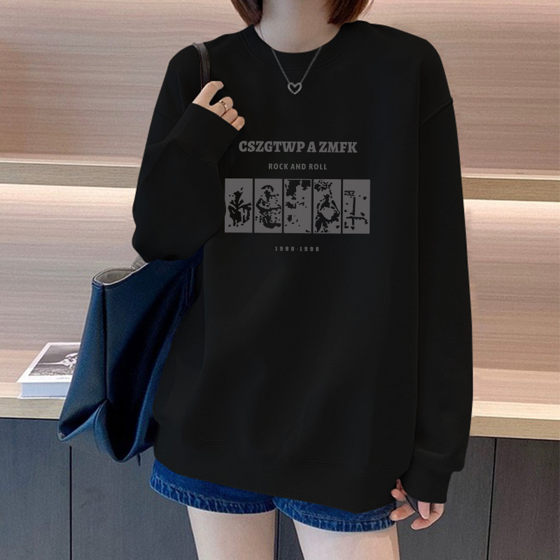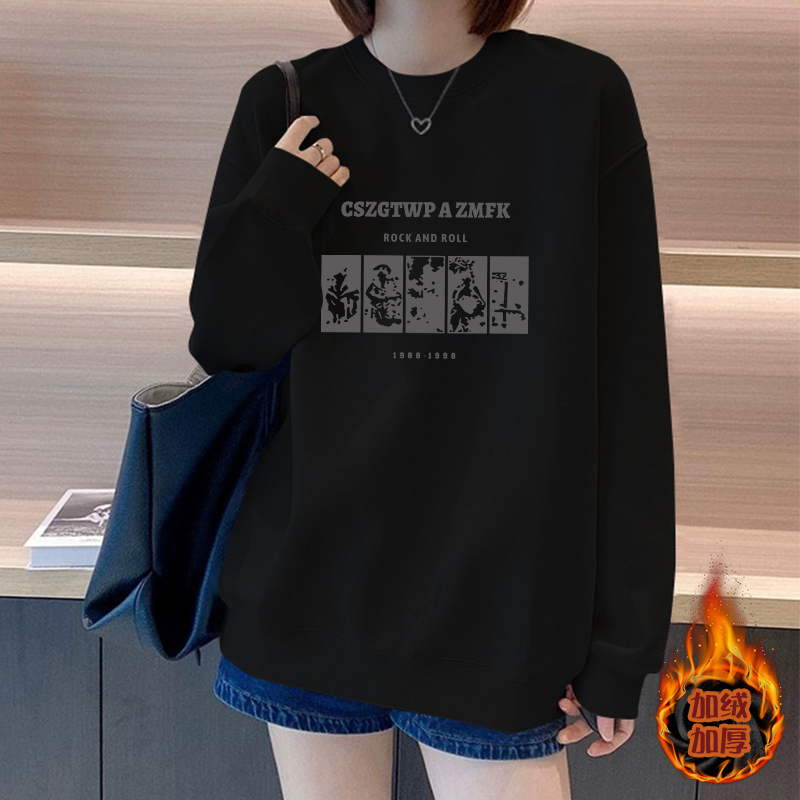 宽松外套秋冬加绒加厚女装 爆款 复古白色圆领卫衣女2025年新款 美式