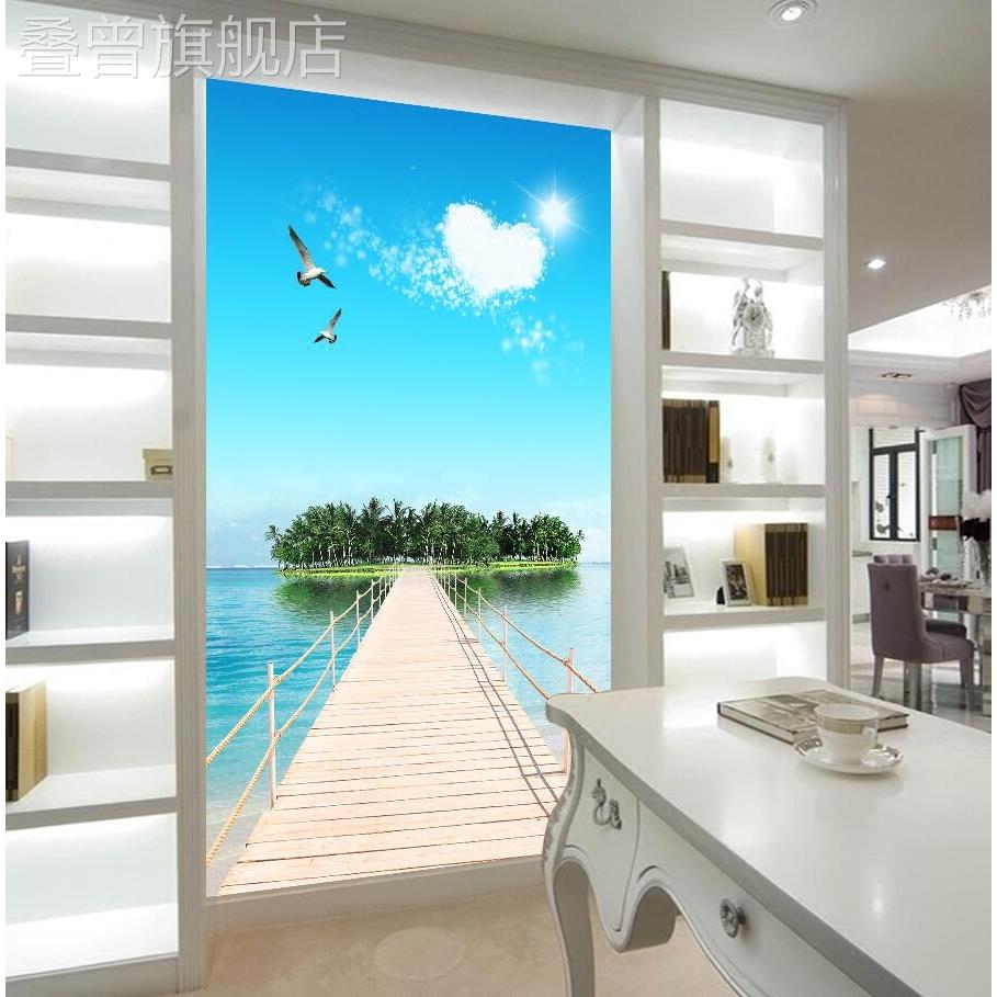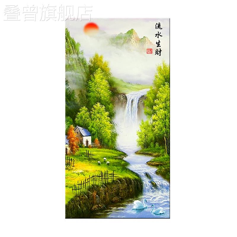 现代客厅无框画走廊过道挂画玄关装 山水风景壁画流水生财 饰画竖版
