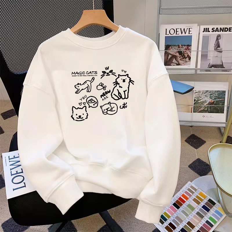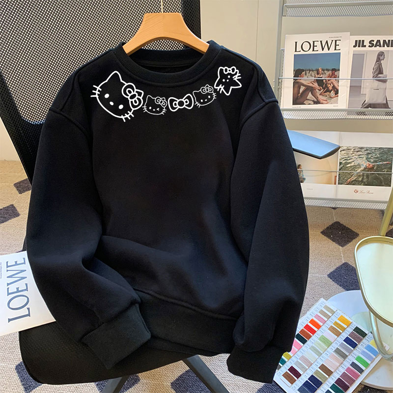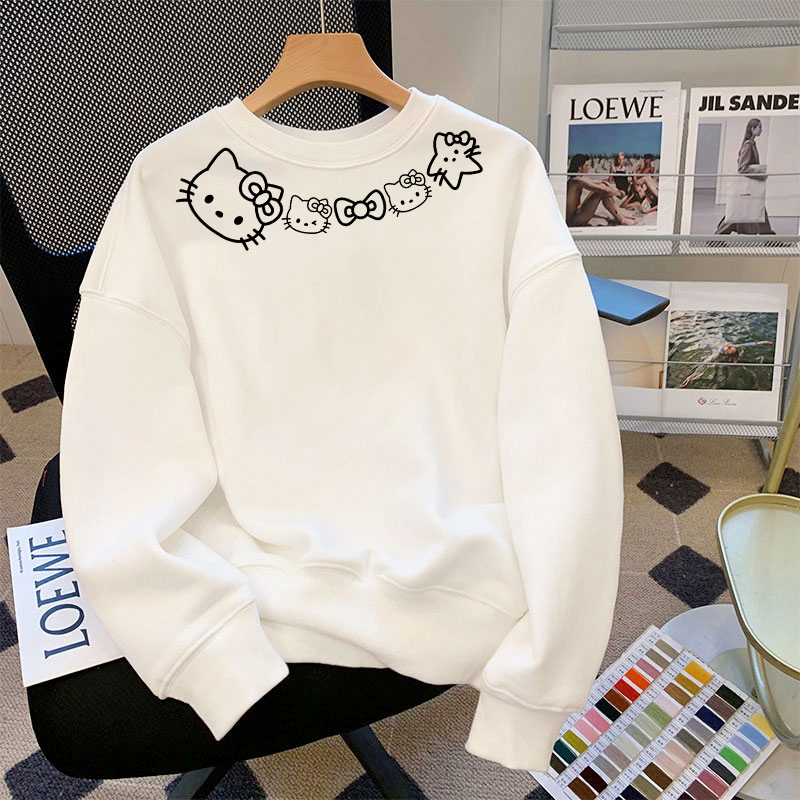 学生上衣服 宽松美式 小众Kitty猫白灰色圆领卫衣女秋冬季 2025新款