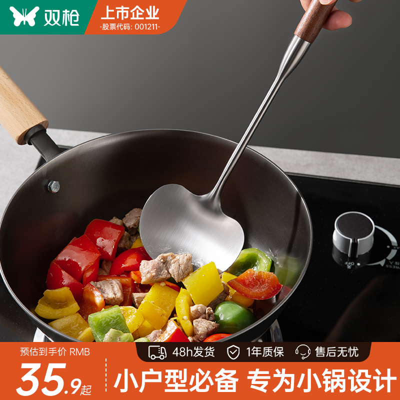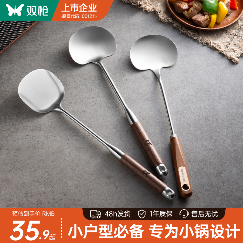 双枪胡桃木蘑菇锅铲不锈钢铲子小号家用炒勺铁铲炒菜勺铁锅专用铲