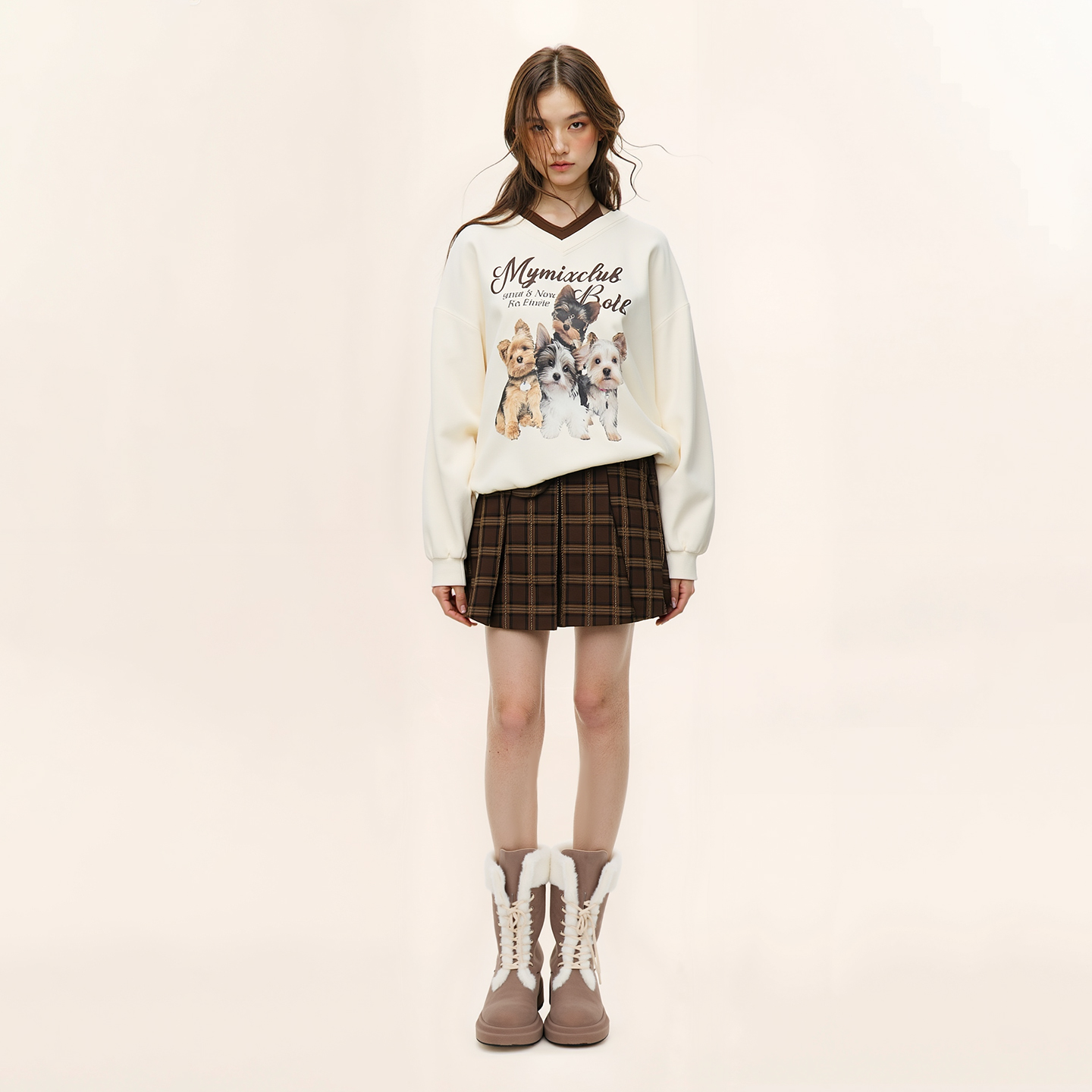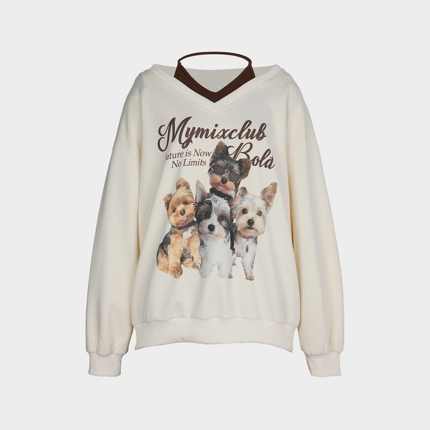 复古小狗狗印花V领假两件卫衣女设计感小众上衣 美式 25冬新品