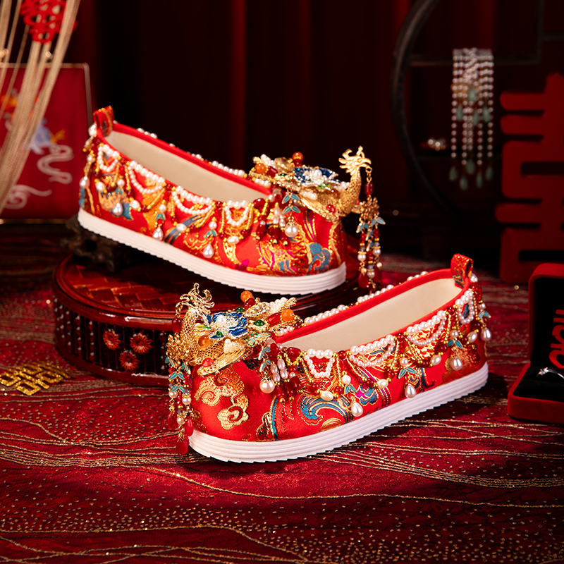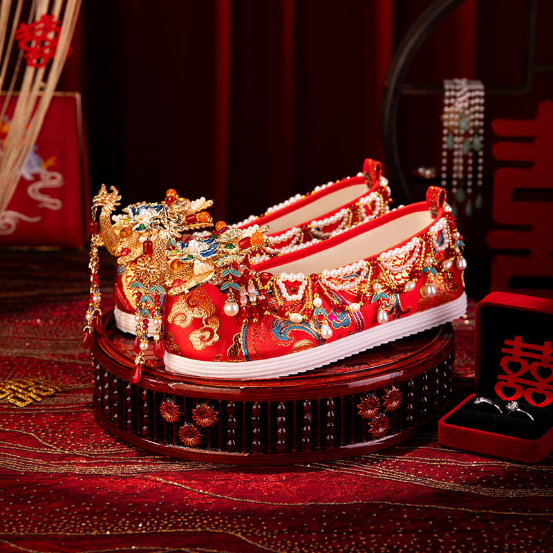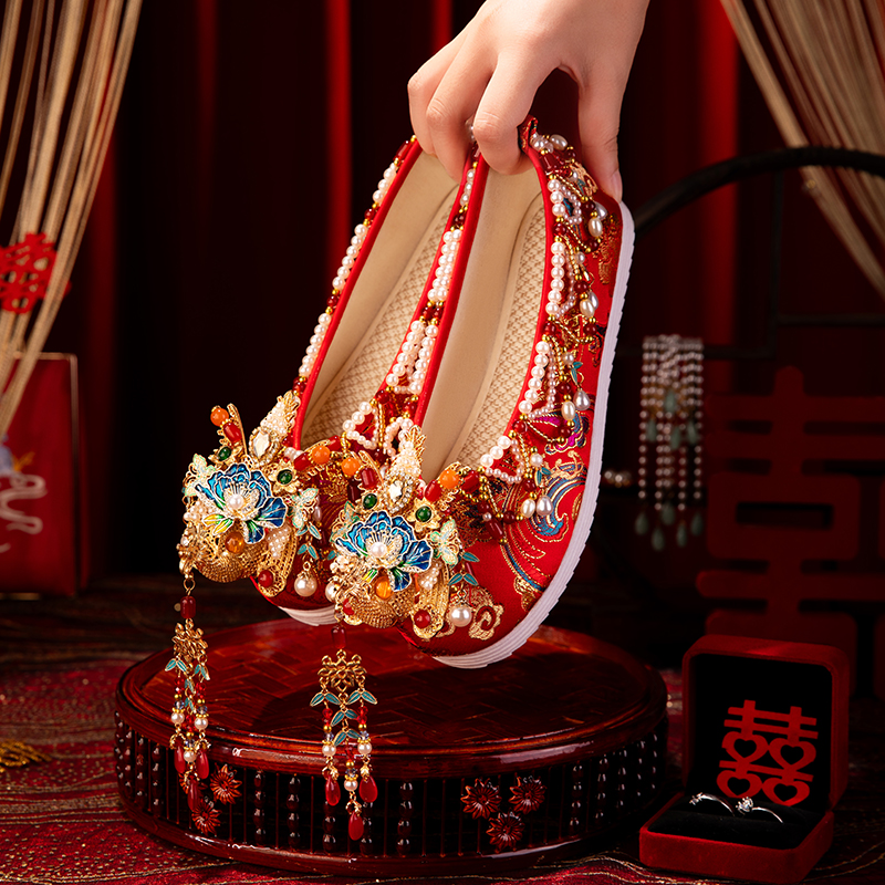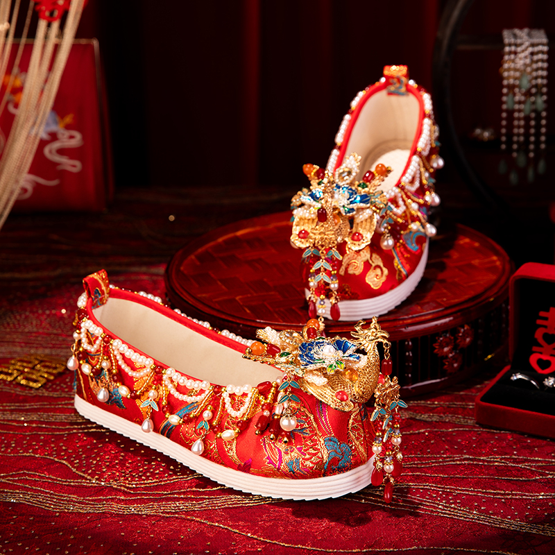 秀禾鞋 汉服婚鞋 平底国风中式 明制婚礼结婚鞋 女手工红色新娘出阁鞋