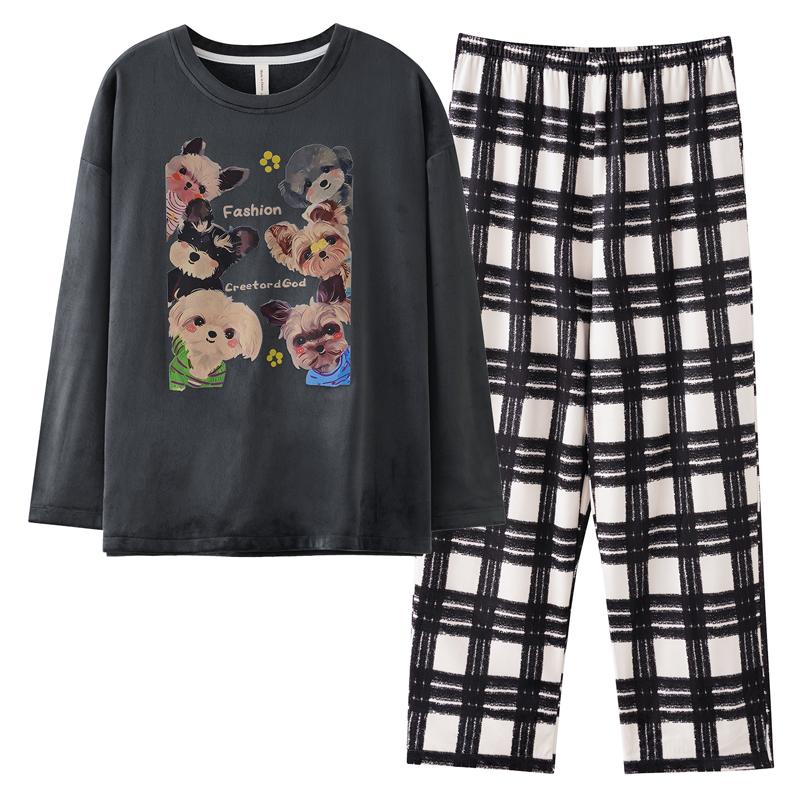 珊瑚法兰绒加绒加厚休闲家居服套装 猫人海岛绒睡衣女冬季 2025新款