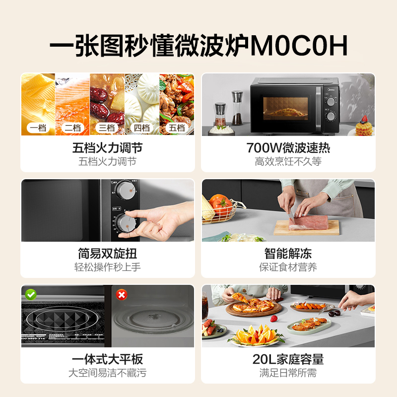 政府补贴美 M20H4 小滋味微波炉家用变频复古小型迷你多功能新款