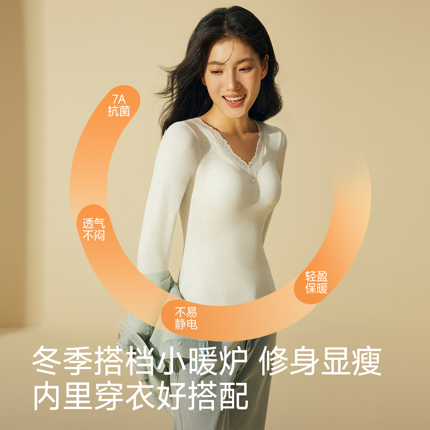 名元 加绒塑身美体内搭上衣 素羊毛蚕丝保暖内衣带胸垫女士秋衣秋裤