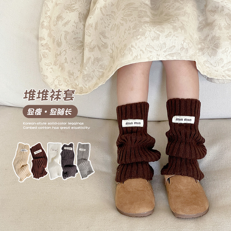 女童袜套秋冬季 堆堆袜套 女孩韩系ins布标小腿套儿童字母加厚时尚