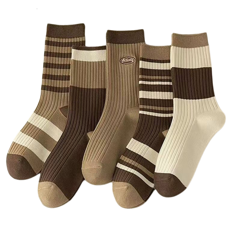 美拉德袜子女2025新款 外穿中筒袜春秋纯棉无骨长袜条纹百搭 爆款