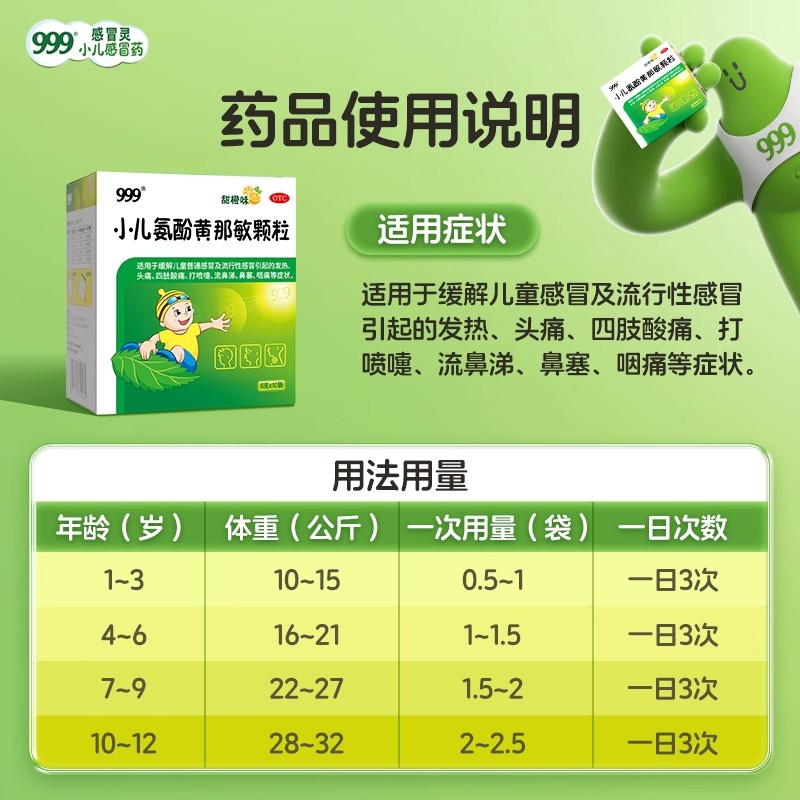 999三九小儿氨酚黄那敏颗粒10袋 感冒流感发烧头痛打喷嚏鼻塞鼻涕