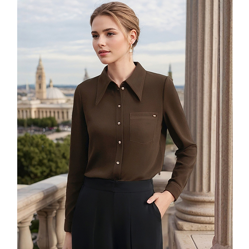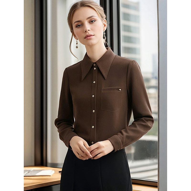 女士拉谷谷春秋长袖 木耳边白衬衫 LAGOGO法式 立领上衣 抗菌抗皱