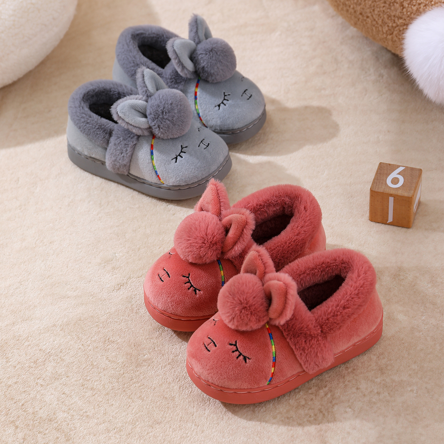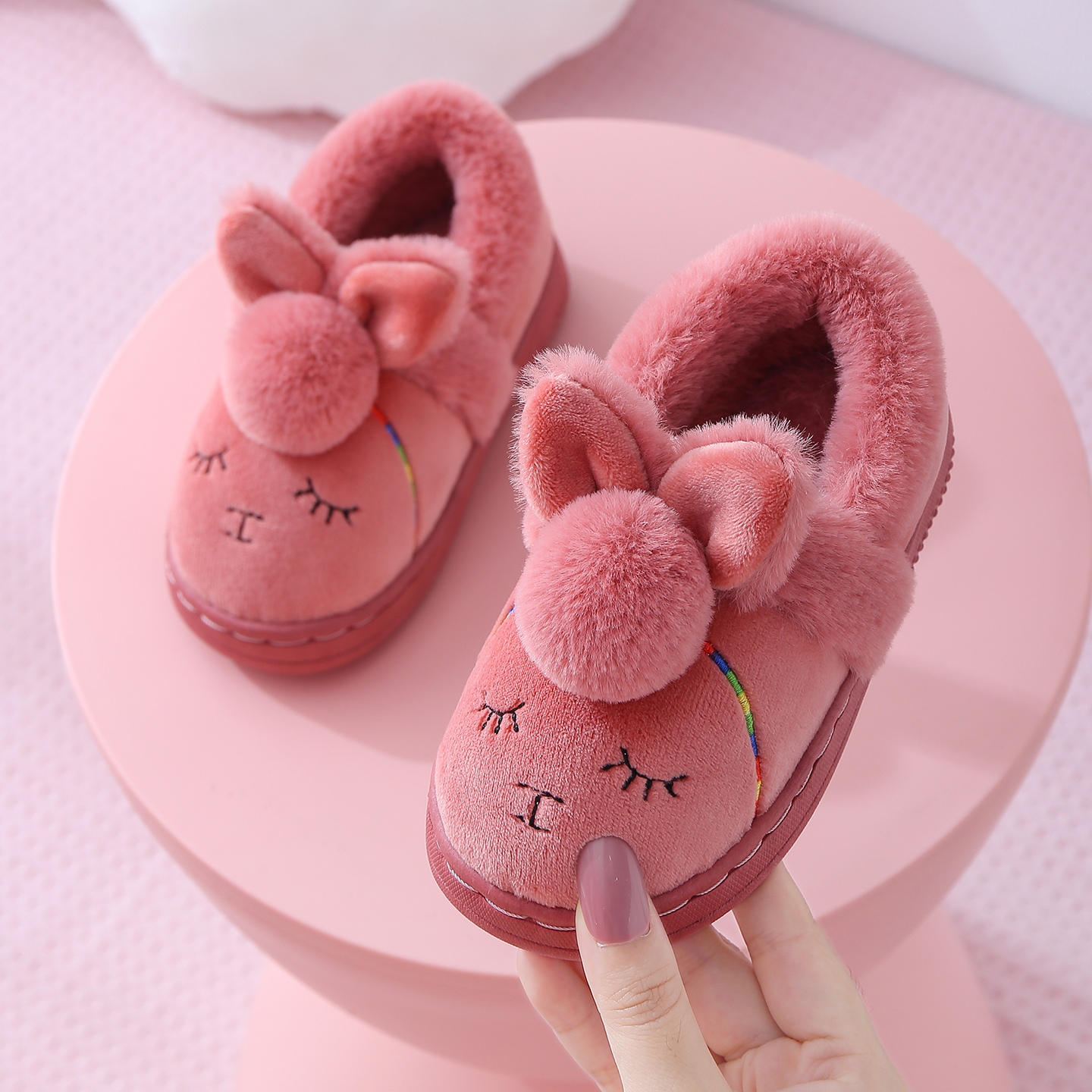 加绒加厚棉拖鞋 车缝线女款 防滑可爱居家室内全家亲子冬季 女童棉鞋