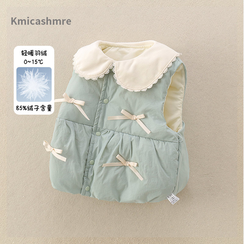 婴儿冬季 女宝宝外出坎肩白鸭绒甜美背心上衣 加厚羽绒马甲2025新款