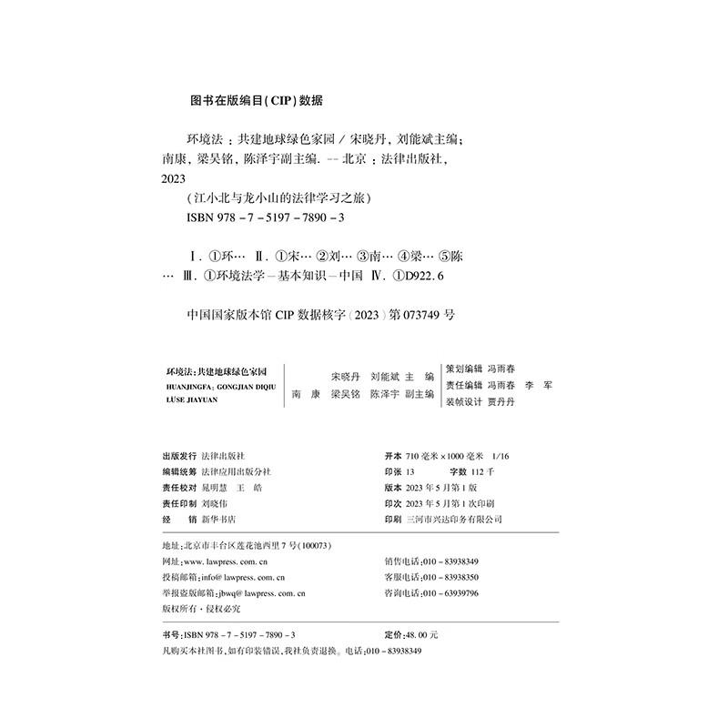 刘能斌 著 热点难点 共建地球绿色家园 引导青少年关注环境保护 阐释环境法中涉及 宋晓丹 法律学习之旅 环境法 江小北与龙小山