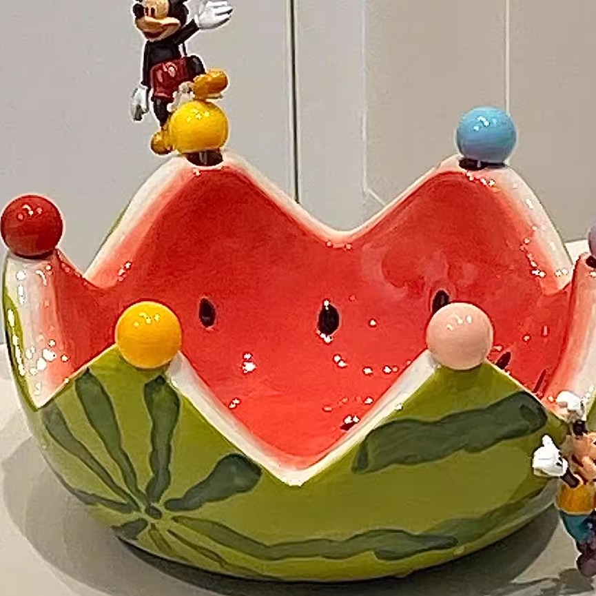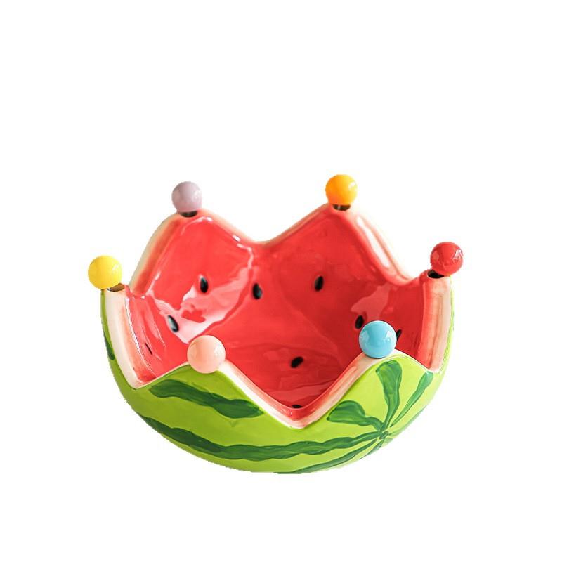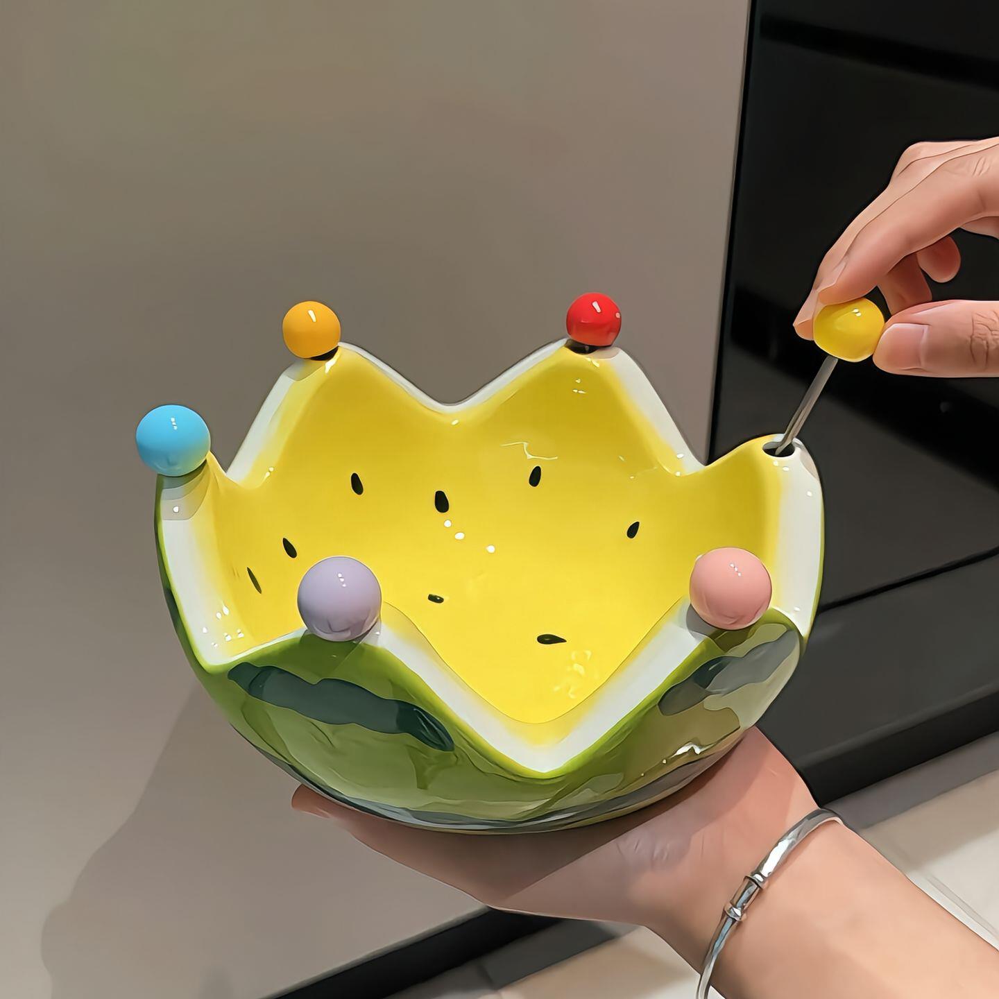 西瓜水果碗高颜值带叉子果盘果盆可爱水果签套装 家用不锈钢水果叉