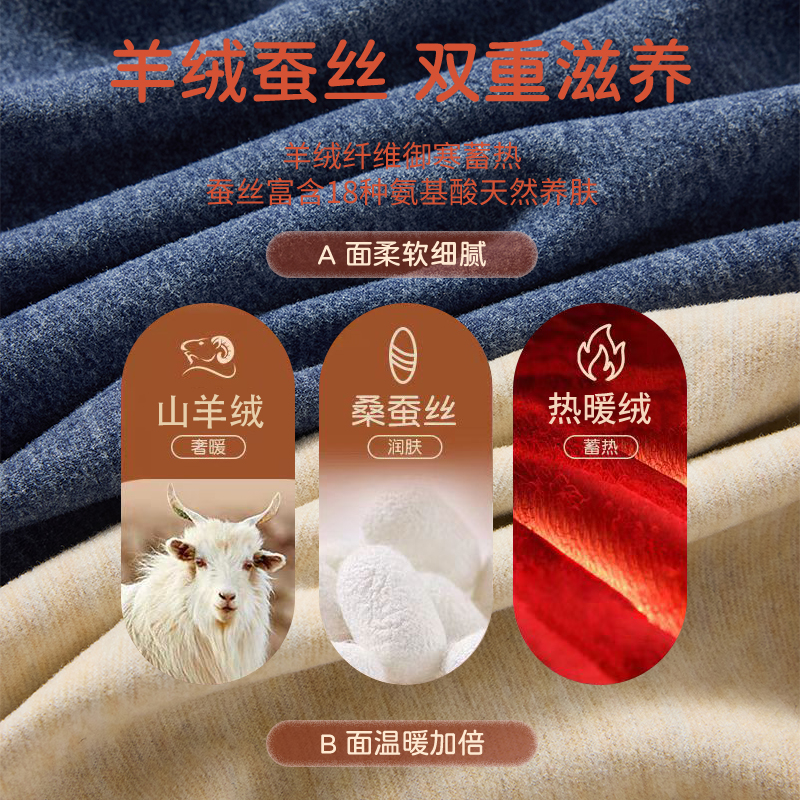 芬腾羊毛蚕丝保暖内衣男绒德无痕发热内穿加绒加厚打底背心冬上衣
