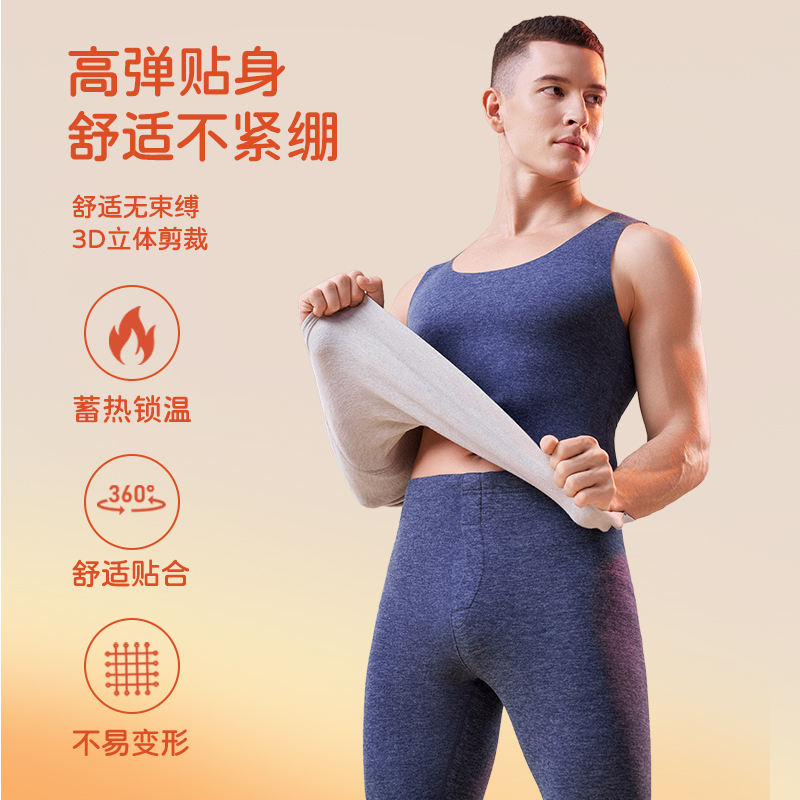 内穿打底上衣马甲内衣 无痕加绒德发热男款 猫人保暖背心男士 秋冬季