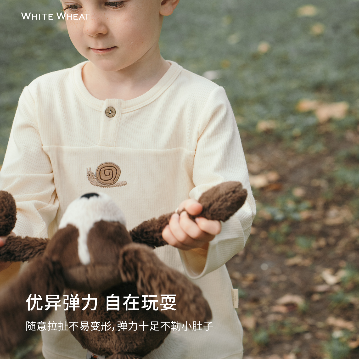 T恤 上衣男女童时髦圆领休闲百搭长袖 whitewheat儿童2025秋季 新款