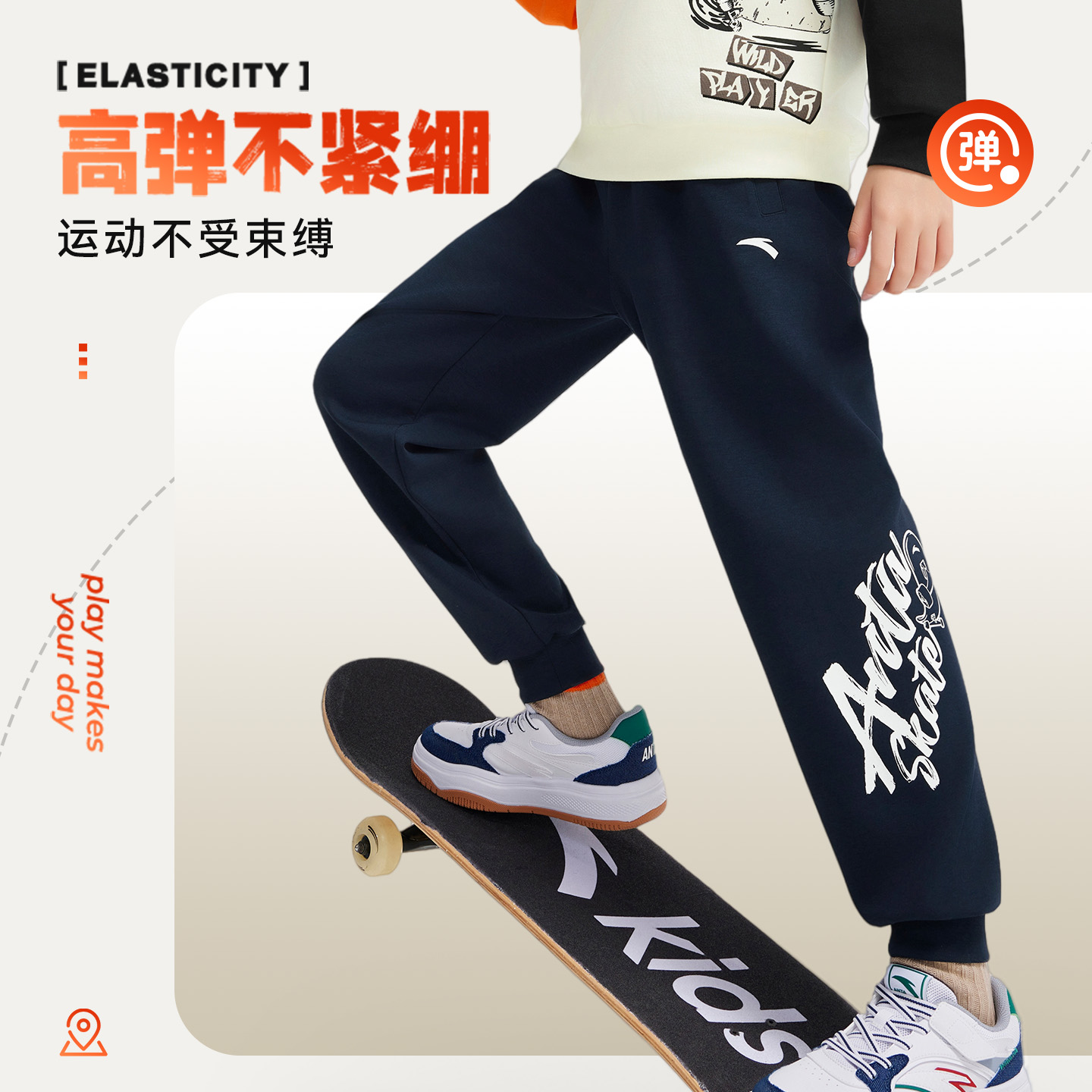子 上新舒适保暖中大童加绒裤 安踏儿童男女童针织运动长裤 2025冬款