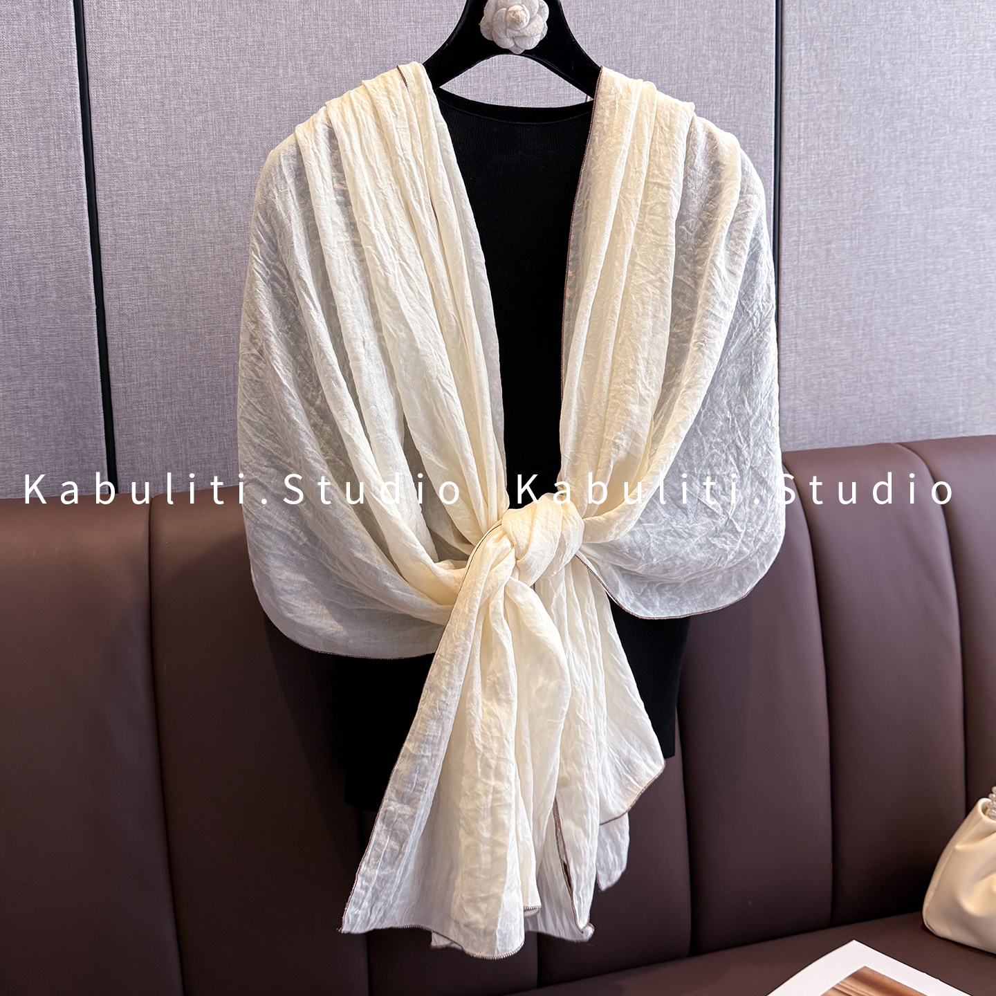 沙漠旅游纯色披肩女外搭薄款 丝巾人鱼姬色珠光纱巾空调房头巾围巾