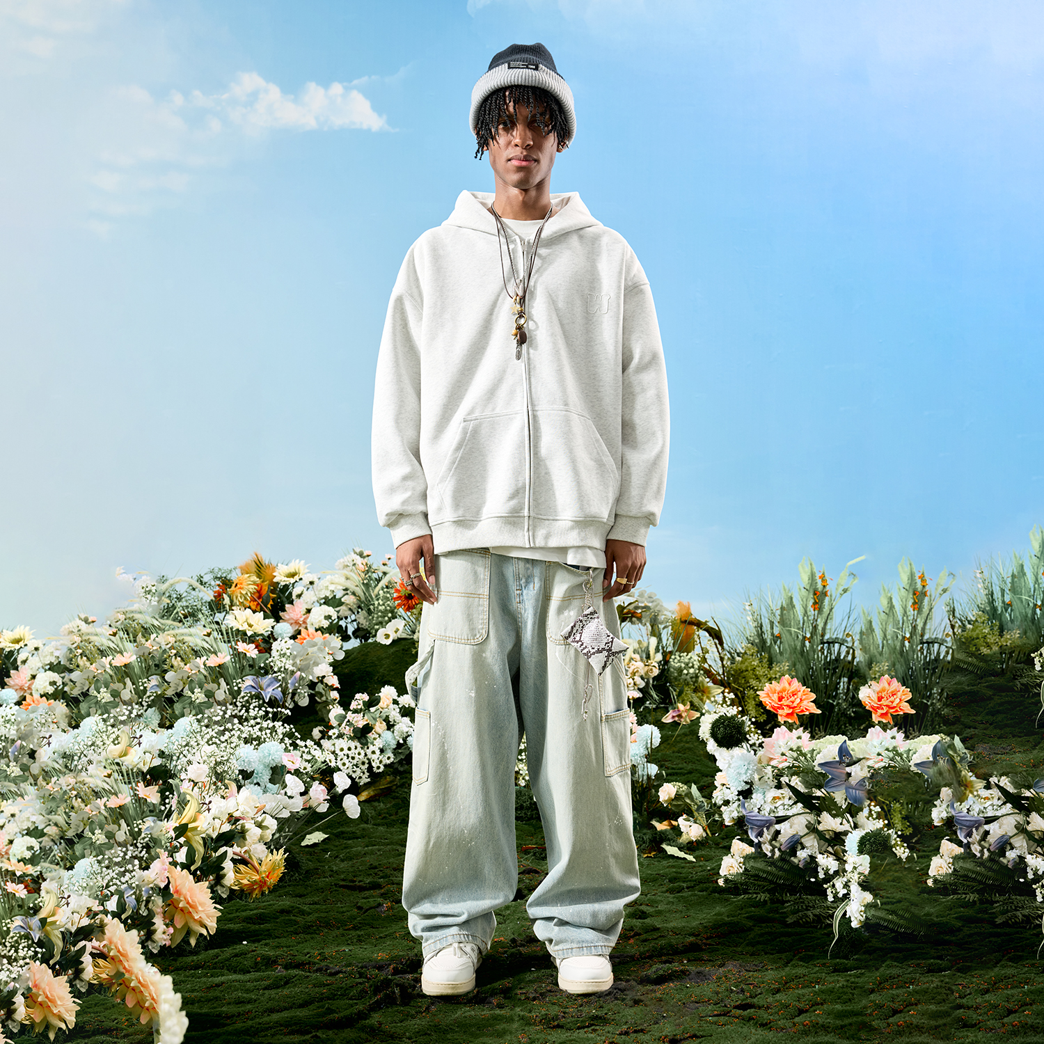 明星同款 2025早秋季 情侣插肩袖 卫衣男女同款 潮牌外套 拉链开衫