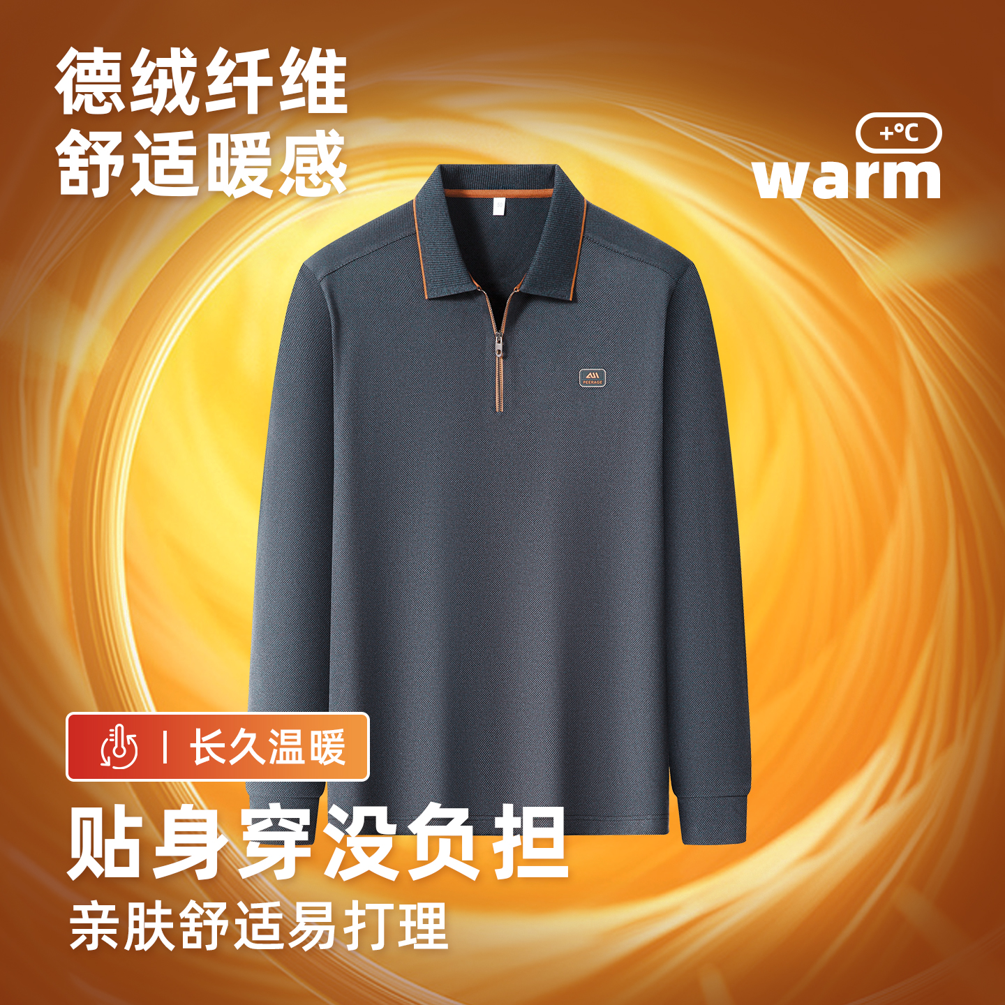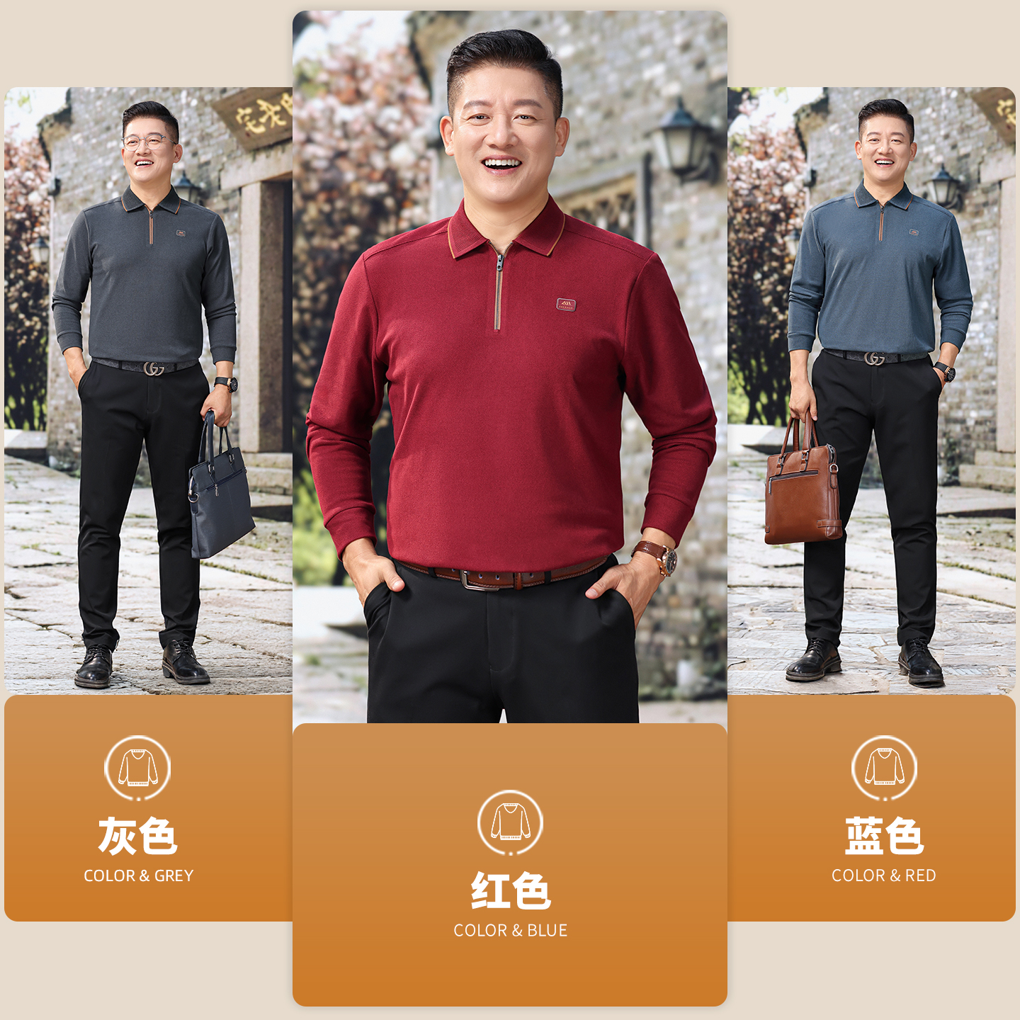 长袖 中年男士 t恤新款 拉链领德绒打底衫 上衣服 爸爸秋装 中老年男装